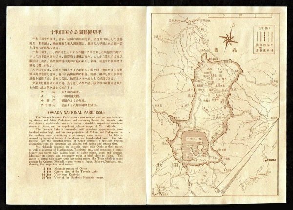 第1次国立公園切手 十和田 小型シート(タトウ付) 糊落ち 未使用
