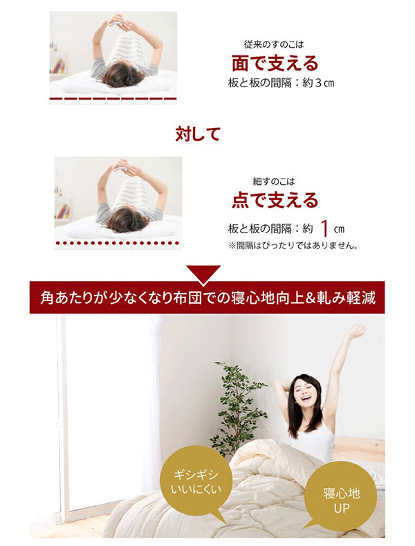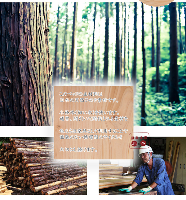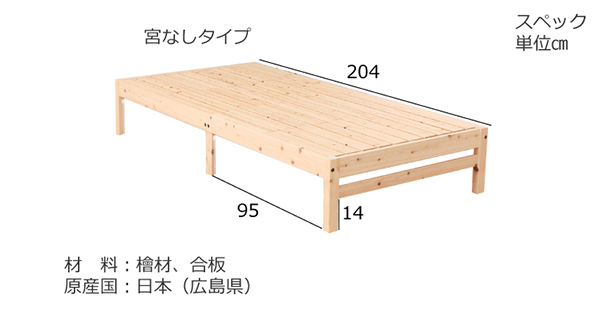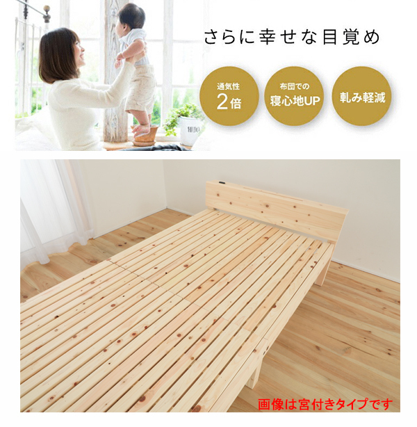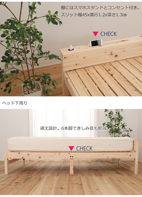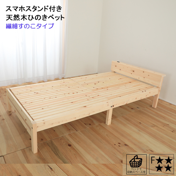 スマホスタンド&コンセント付き天然木ひのきシングルベット 繊細すのこタイプ フレームのみ