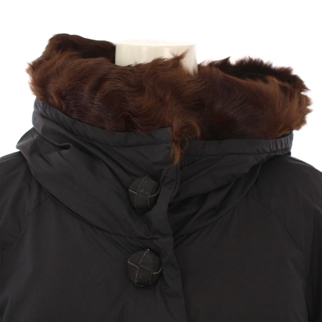 モンクレール MONCLER EUDORE GIUBBOTTO ダウンコート アウター ロング丈 フード ファー 00 黒 ブラック /BB レディース