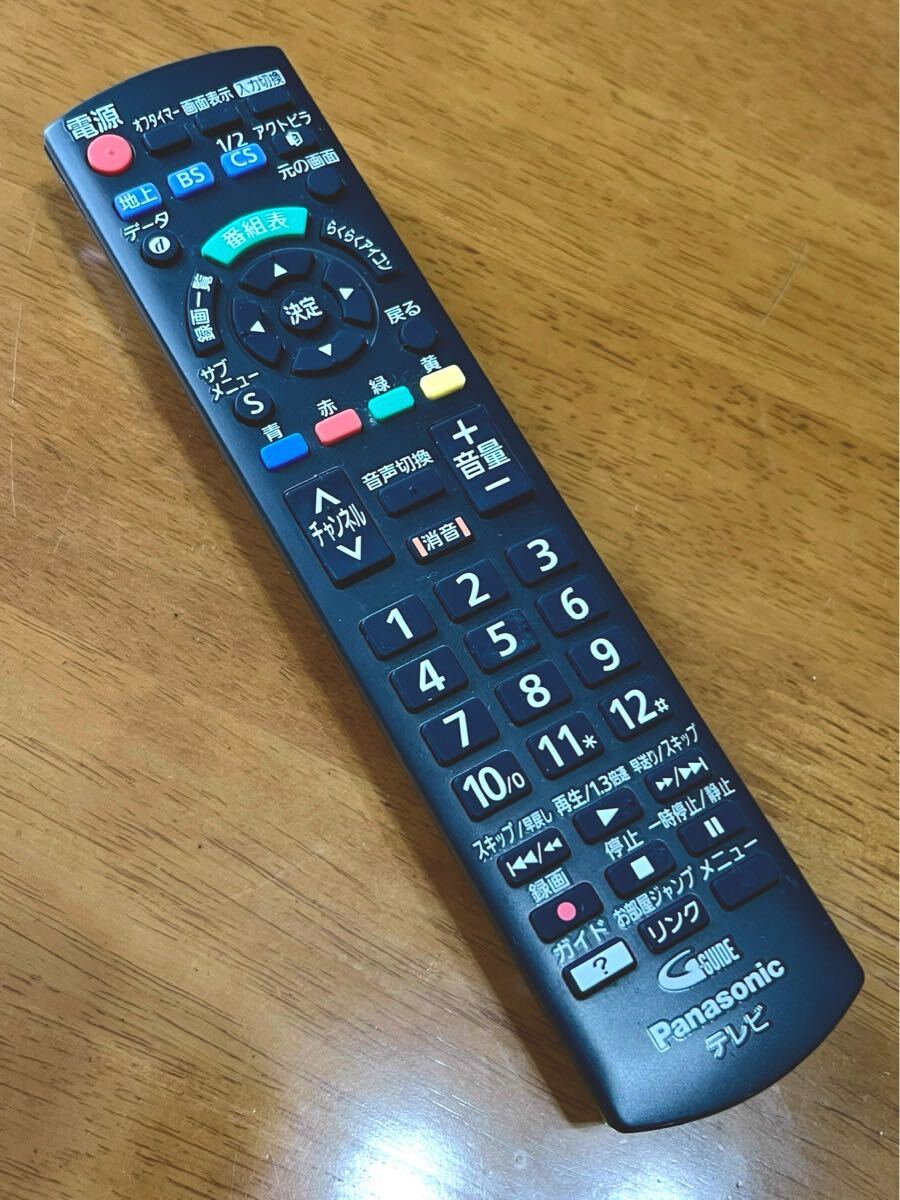 多機能ボタンを備えたPanasonic製テレビ用リモコンN2QAYB001017 純正リモコンです。