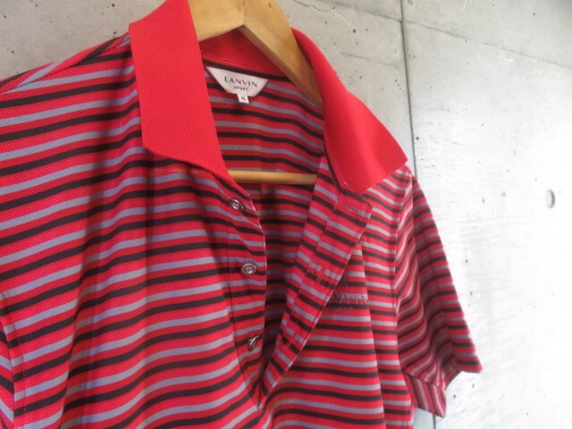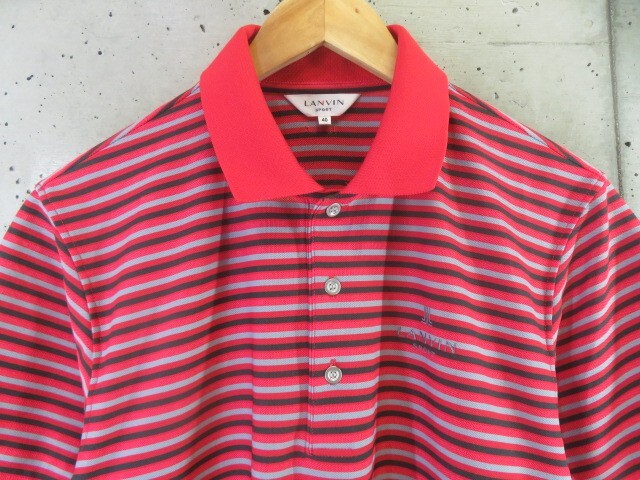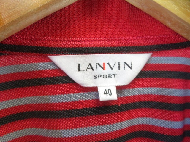 【送料300円可】5090b9◆美品です◆吸汗速乾◆LANVIN ランバン 半袖ボーダーポロシャツ 40/ゴルフジャケット/コート/ニットセーター/パンツ