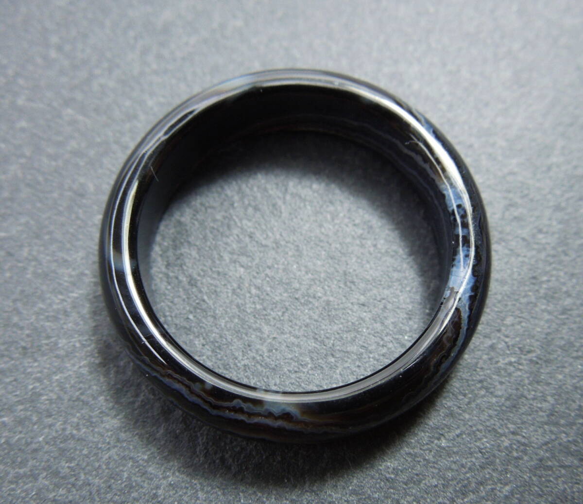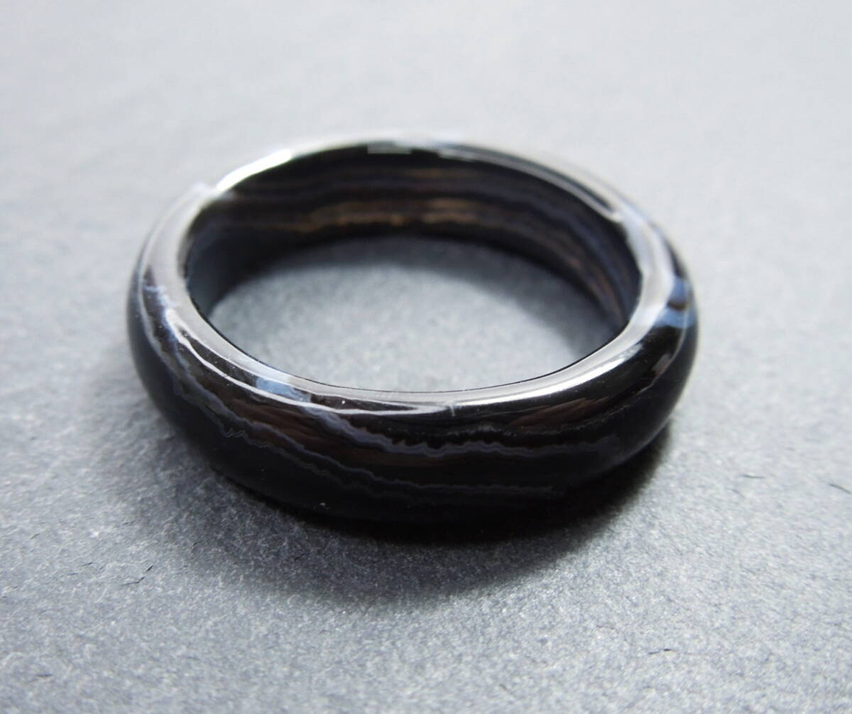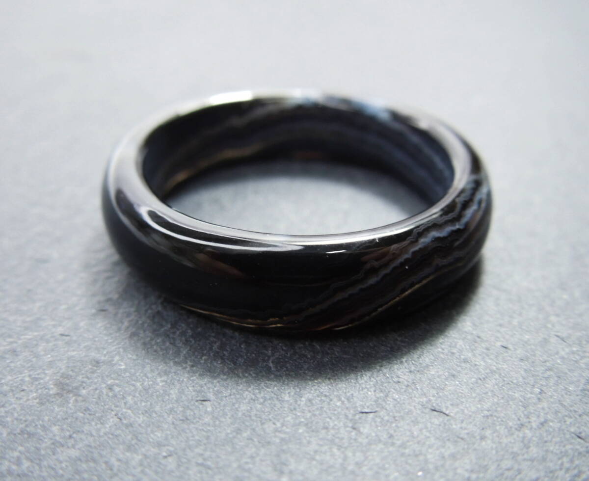 R5 メノウリング 約20.25号 黒白系 瑪瑙指輪 くりぬきリング 天然石 リング 瑪瑙 指輪 めのう くり抜きリング 約20号強