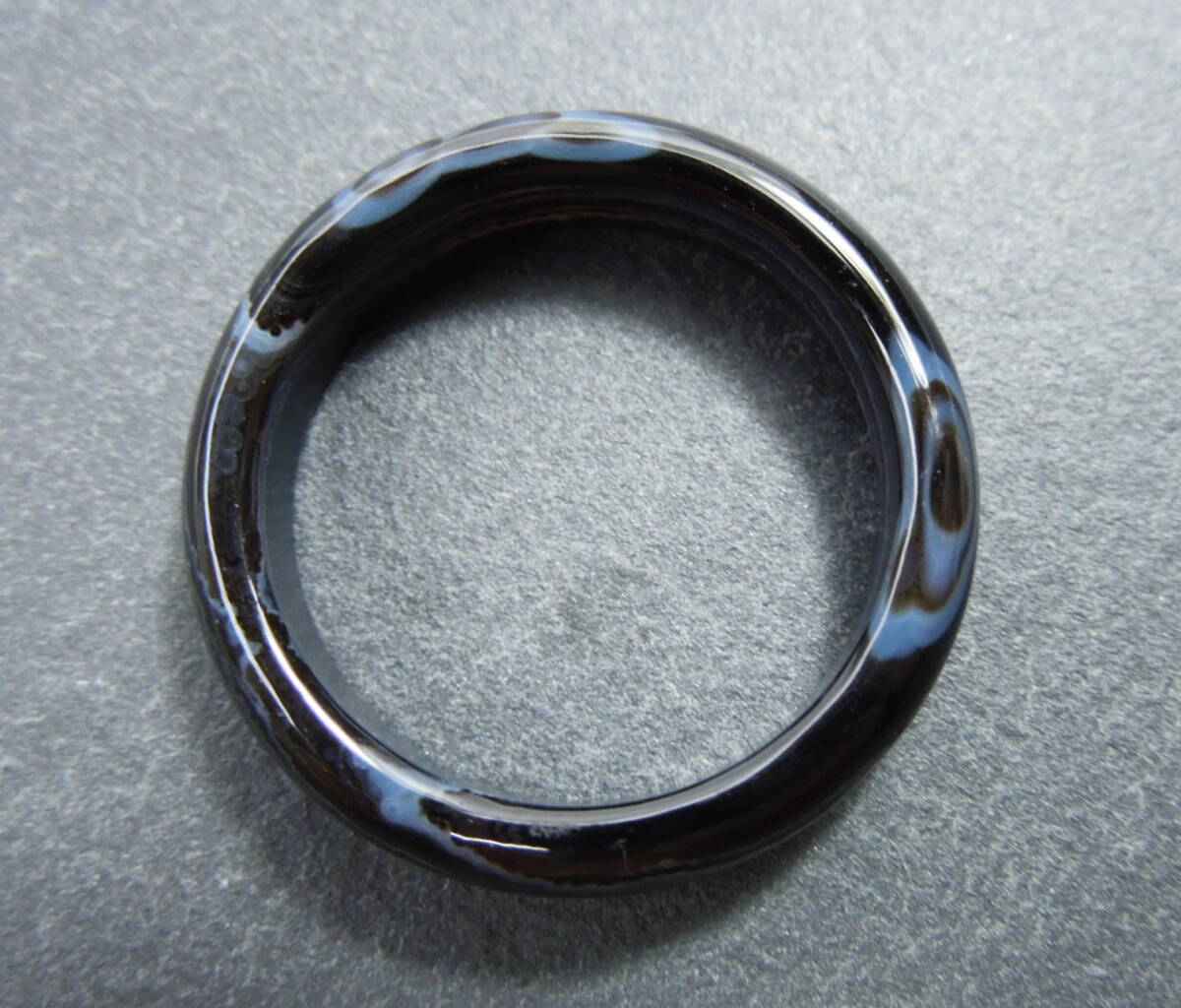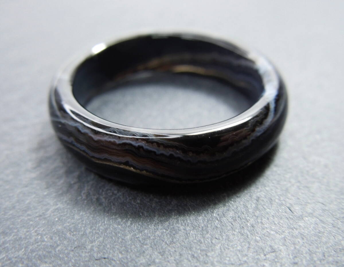 ブラックの中にレースのような模様が入ったメノウリングです。