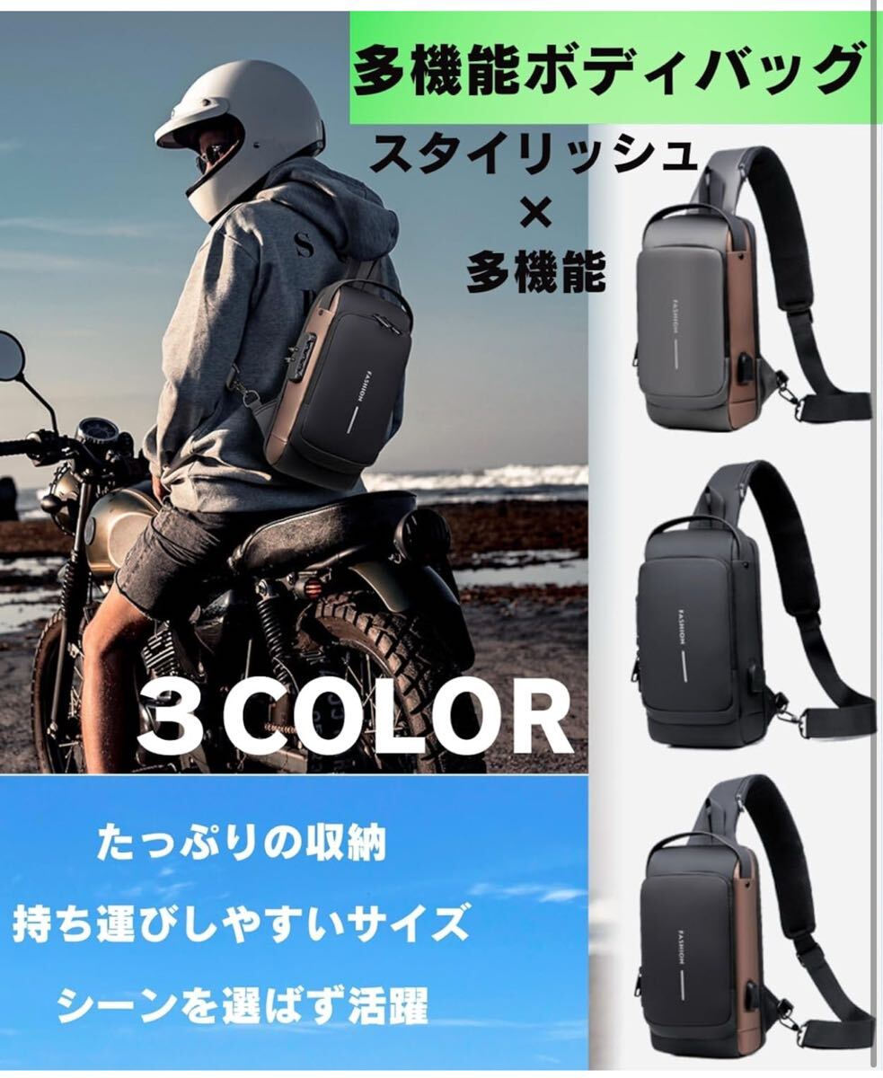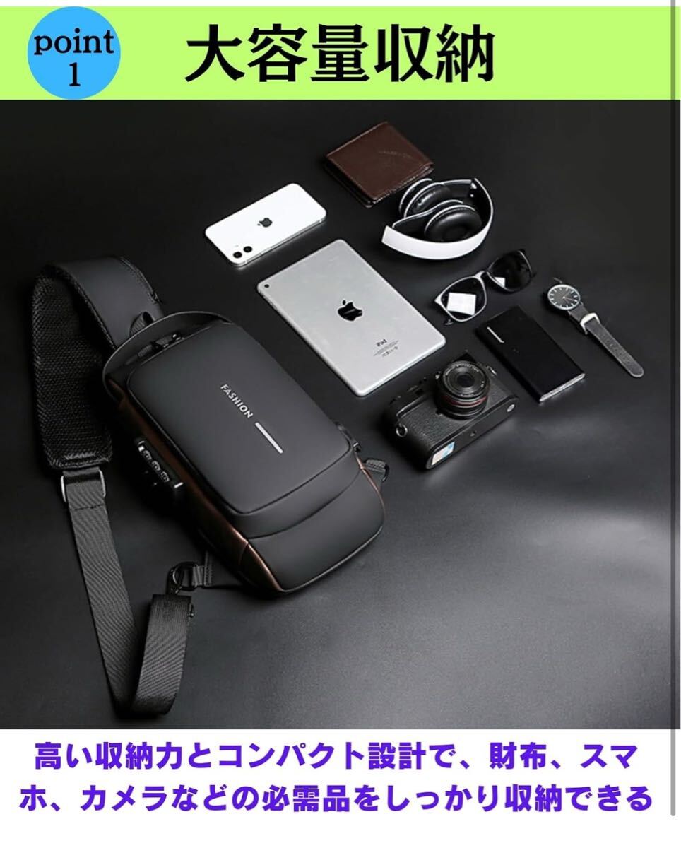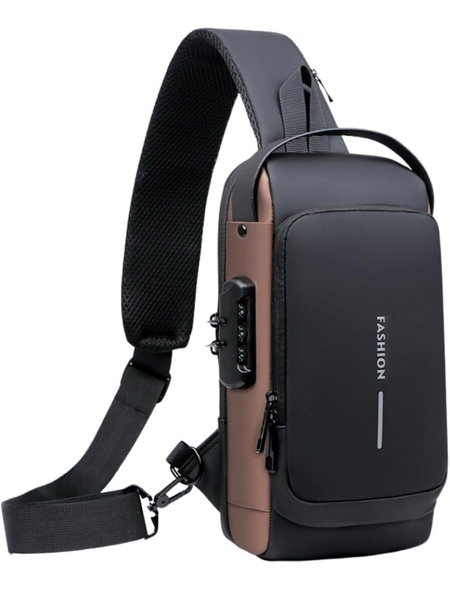 ショルダーバッグ ボディバッグ スポーツバッグ 斜めがけバッグ 肩掛けバッグ メンズ 人気 盗難防止 USBポート 軽量 大容量 撥水 自転車 旅行 (ブラック/ブラウン)