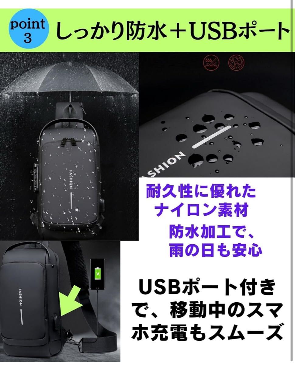 【多機能ショルダーバッグ】反射板付き:車のライトに強く反射する反射材をショルダーバックの肩ひもに配置しているので、夜間の自転車やバイクの運転も安全。USBポート付き:スマホ、タブレットのバッテリーが少ないときも安心。(モバイルバッテリーを繋ぐUSBケーブル1本付属、モバイルバッテリーは商品に付属しておりません。)