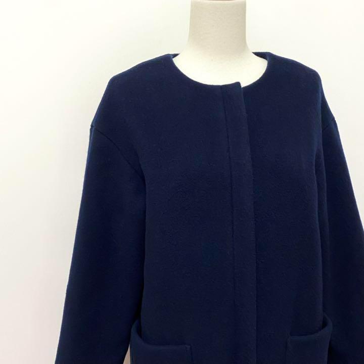 リラックス感が魅力のウールコートです。 ゴールドファスナーがアクセントのデザインです。 起毛を施されたふっくらとした生地感です。
