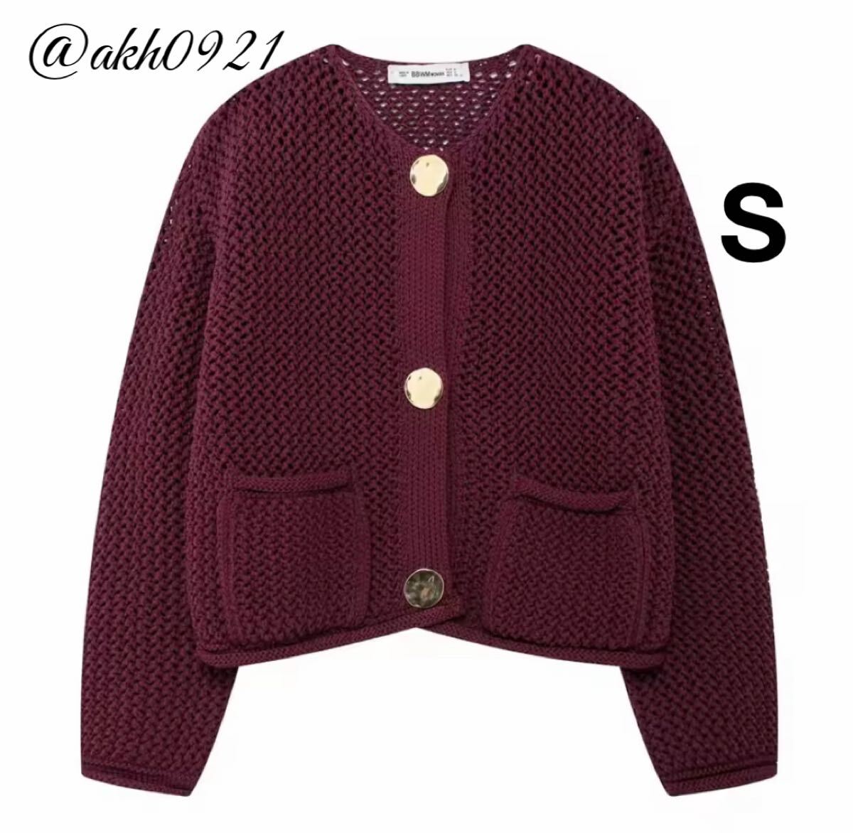 新品★秋新作★vintage ヴィンテージ レトロ ゴールドボタン メッシュ ニット カーディガン トップス Sサイズ レディース★ZARA 好きな方に