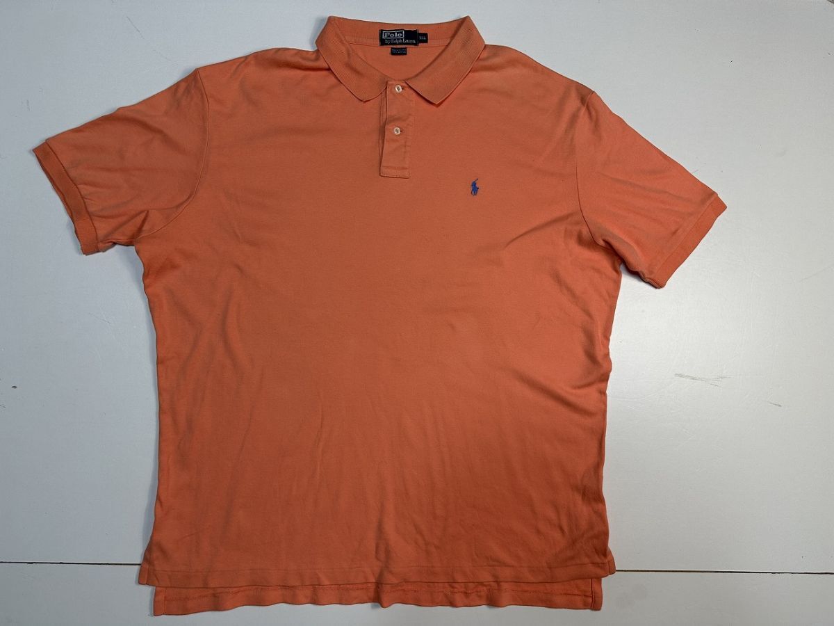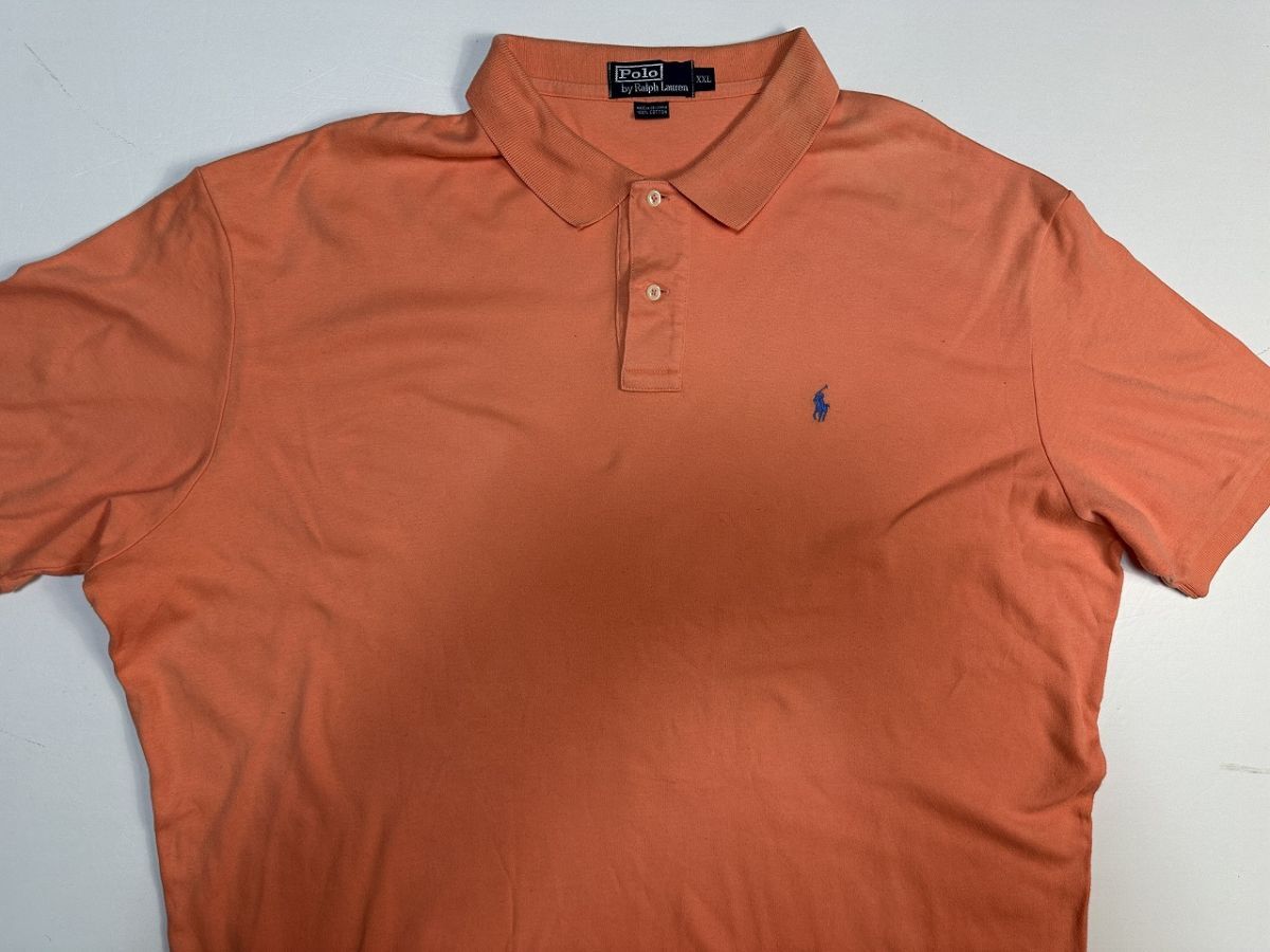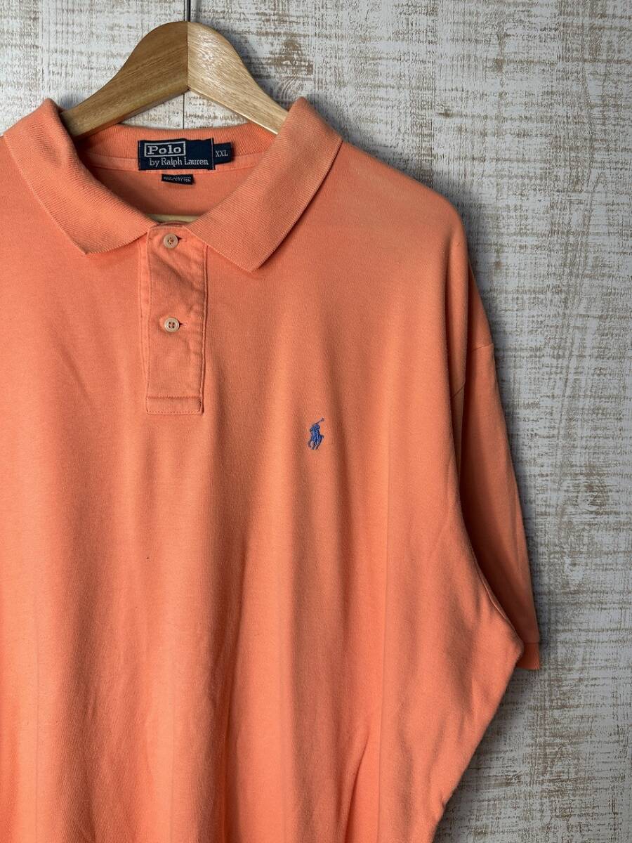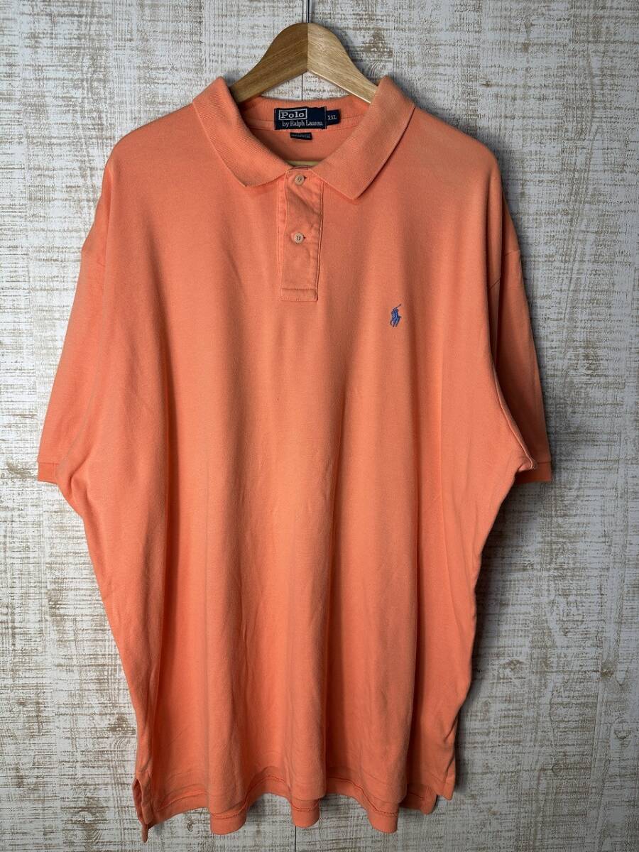 ●US USED 超ビッグサイズ US古着 POLO Ralph Lauren ラルフローレン ポロシャツ ポニーロゴ刺繍 半袖 シャツ オレンジ【2XL】天竺