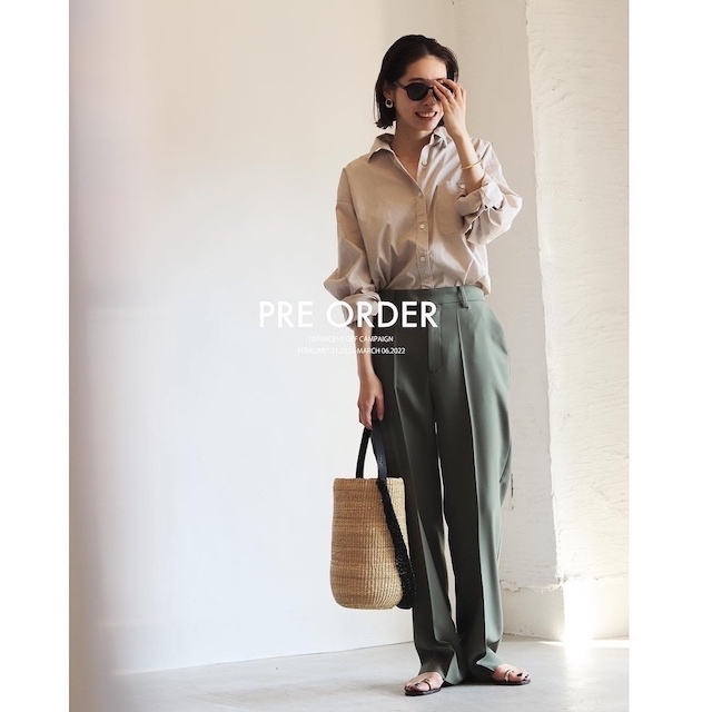ハンサムに着こなしたいMANNISH パンツ。 落ち感のある生地で、スタイリングにニュアンス感をもたらしてくれる一本です。 定価19800円です。