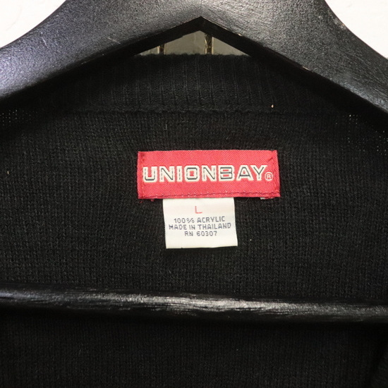 M868 2000年代製 UNIONBAY アクリルニットセーター■00s 表記Lサイズ 黒 ブラック Vネック 2トーンカラー アメカジ ストリート 古着
