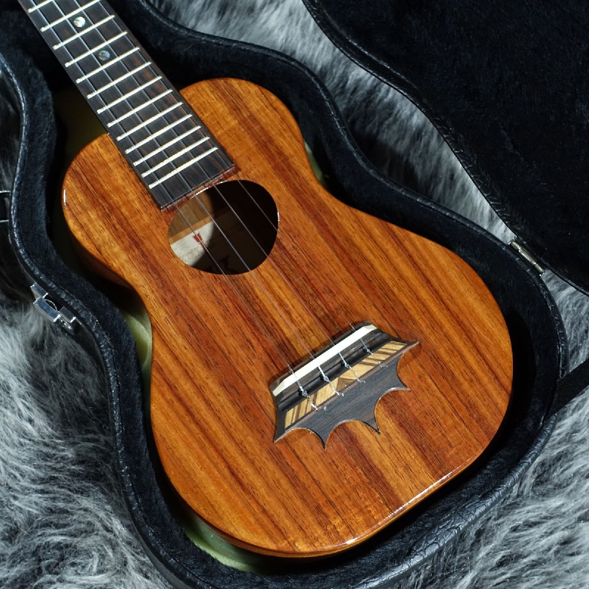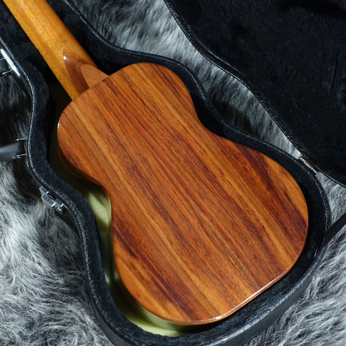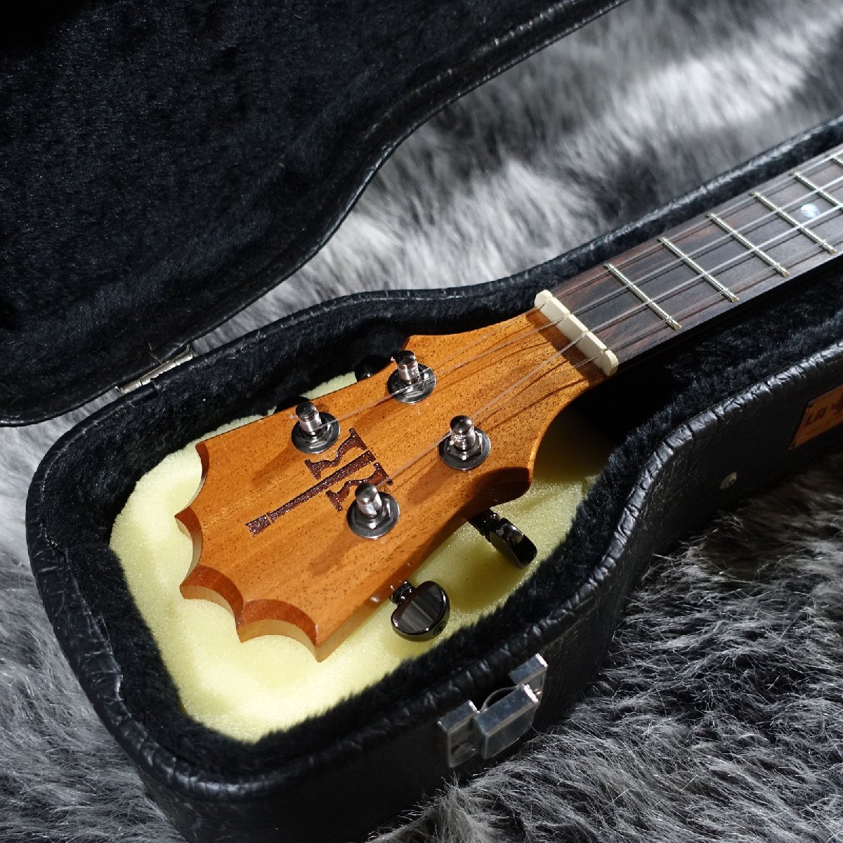 コンサートサイズのボディにテナーサイズのネックを組み合わせたロングネック仕様、ブリッジがヘッド同様クラウン型となっており珍しいスペックです。