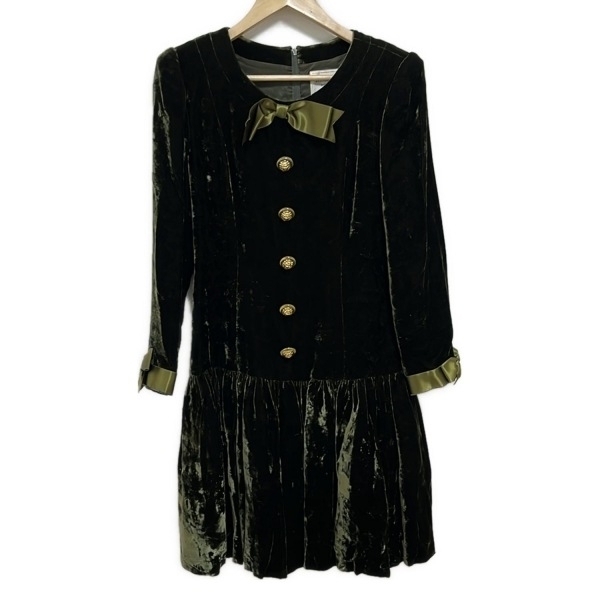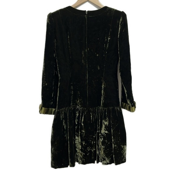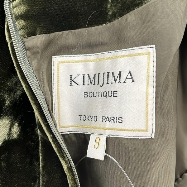 キミジマ kimijima サイズ9 M - カーキ レディース クルーネック/長袖/ひざ丈/ベロア/リボン/肩パッド ワンピース