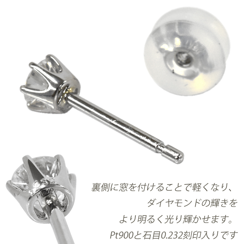 素材 | 本体・ポスト・キャッチの全てが Pt900 キャッチは滑りにくいシリコン付き 天然ダイヤモンド |