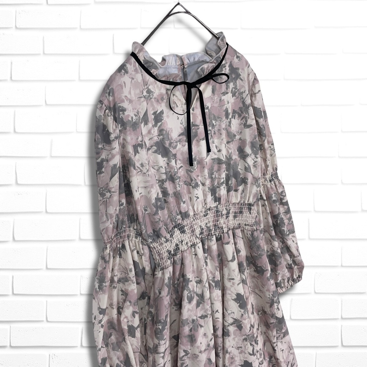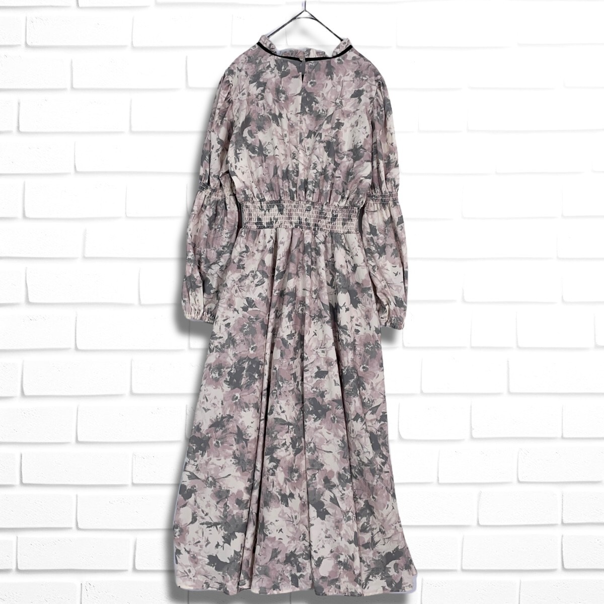 ◆美品◆ Feroux フェルゥ 花柄 フラワー 総柄 ウエスト ギャザー 長袖 ロング ワンピース レディース 2 M ◆送料無料◆ 0105I□
