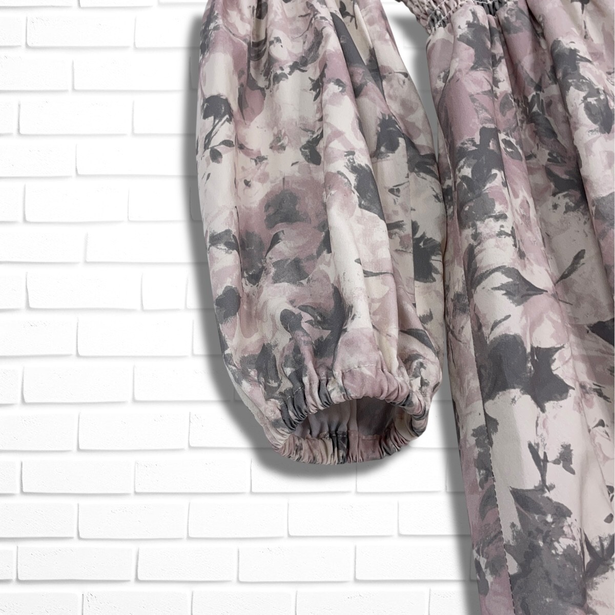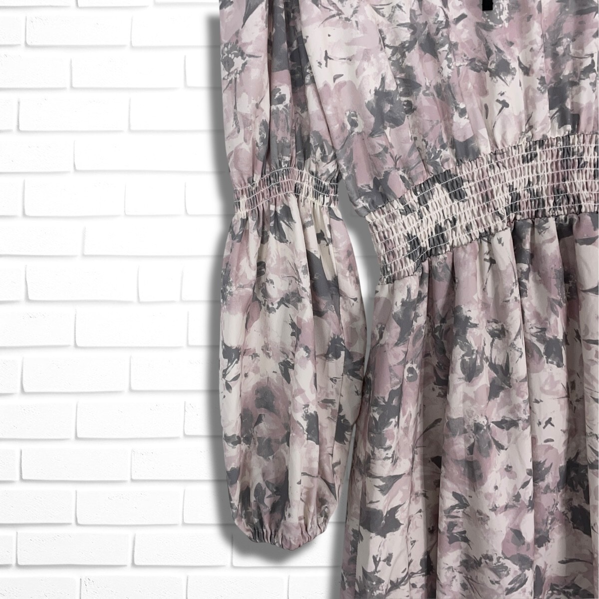 ◆美品◆ Feroux フェルゥ 花柄 フラワー 総柄 ウエスト ギャザー 長袖 ロング ワンピース レディース 2 M ◆送料無料◆ 0105I□