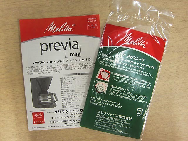 未使用品 Melita メリタ コーヒーメーカー プレビア ミニ JCM-333 ※箱ダメージあり