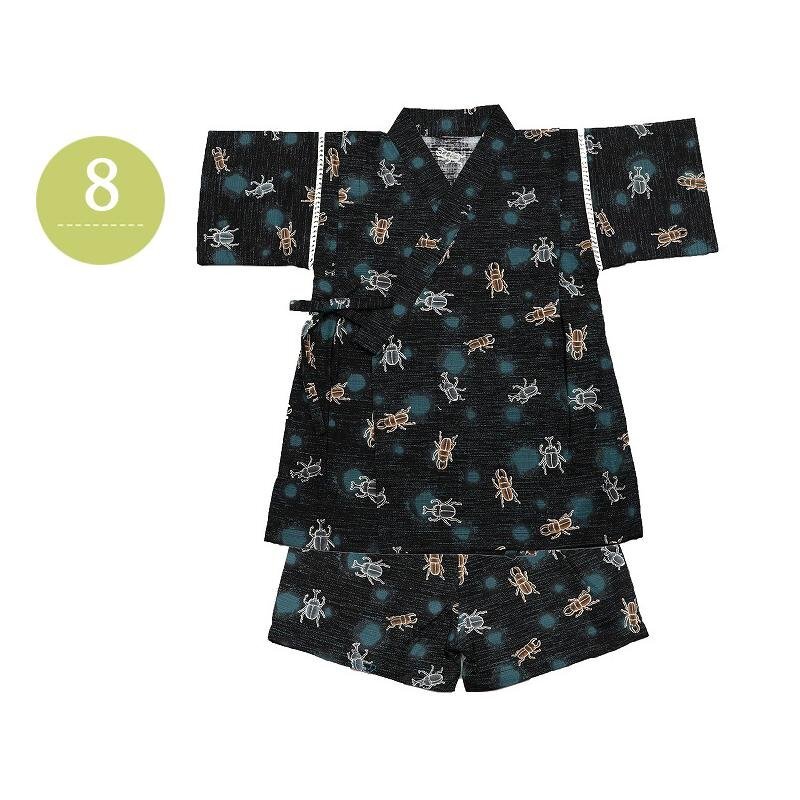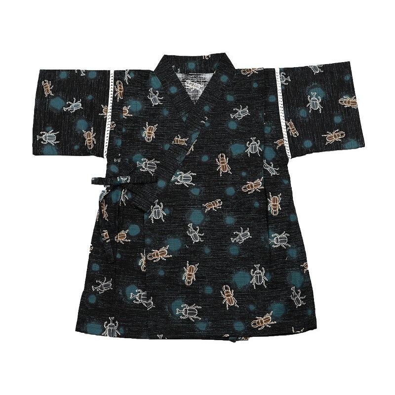 大特価◆キッズ◆男の子用 甚平 綿素材 k-210 (8カブトムシ黒・90cm) 【お祭り 涼しい イベント 子供 花火大会 和装】