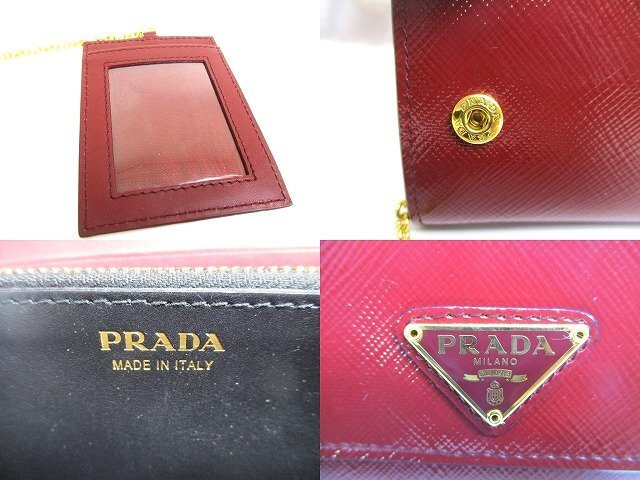 a606 【未使用保管品】 PRADA プラダ サフィアーノ レザー 2つ折り 長財布 ロングウォレット パスケース 付き 未使用保管品の為とても綺麗なお品です(新品同様の状態ですが、未開封の新品ではないので一見わかりにくい些細な傷や汚れは御了承くださいませ。) 【ブランド】PRADA 【カラー】チェリー (Cerise N) 【素材】レザー 【サイズ】幅:約18.5cm 高さ:約9cm 奥行き:約3cm ※あくまでも実寸なので多少の誤差はあるかもしれませんのでご了承ください。 【参考定価】137,500円 【製造刻印】- 【型番】1MH132 【機能】札入れ×2、小銭入れ×2、カード入れ×10、ポケット×4 【付属品】ギャランティーカード、箱 【商品状態 】A ランク |