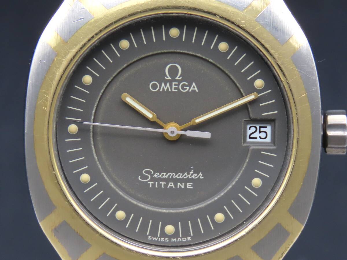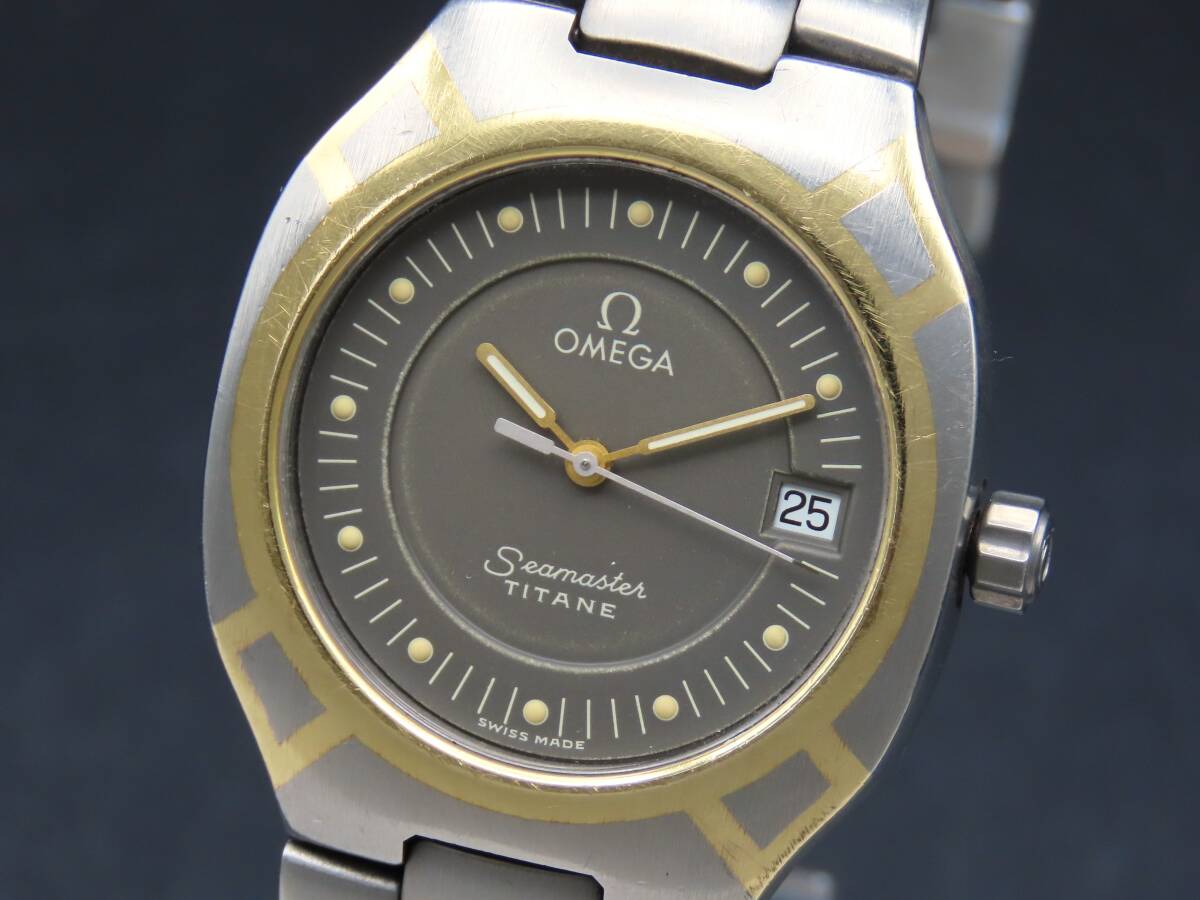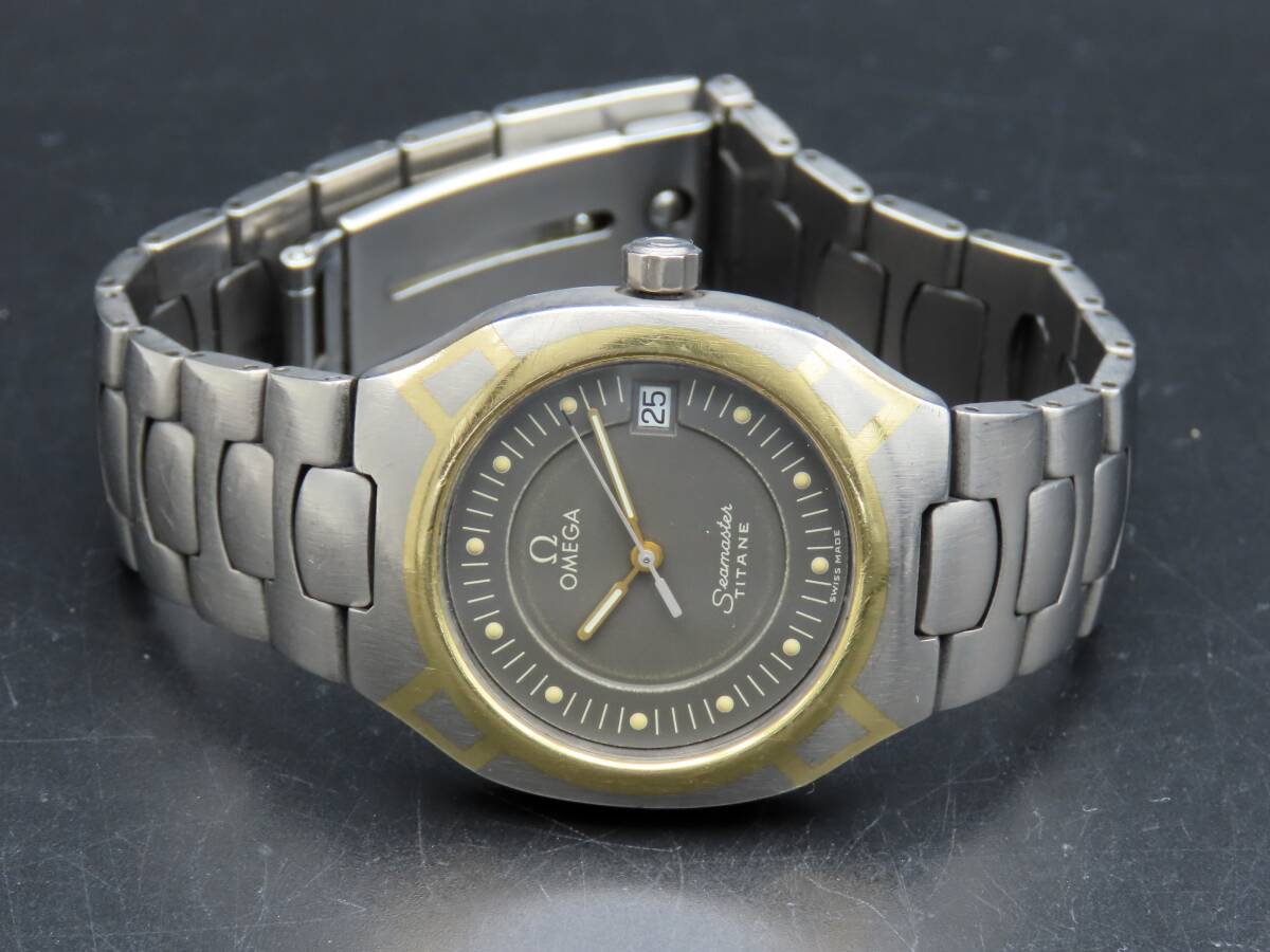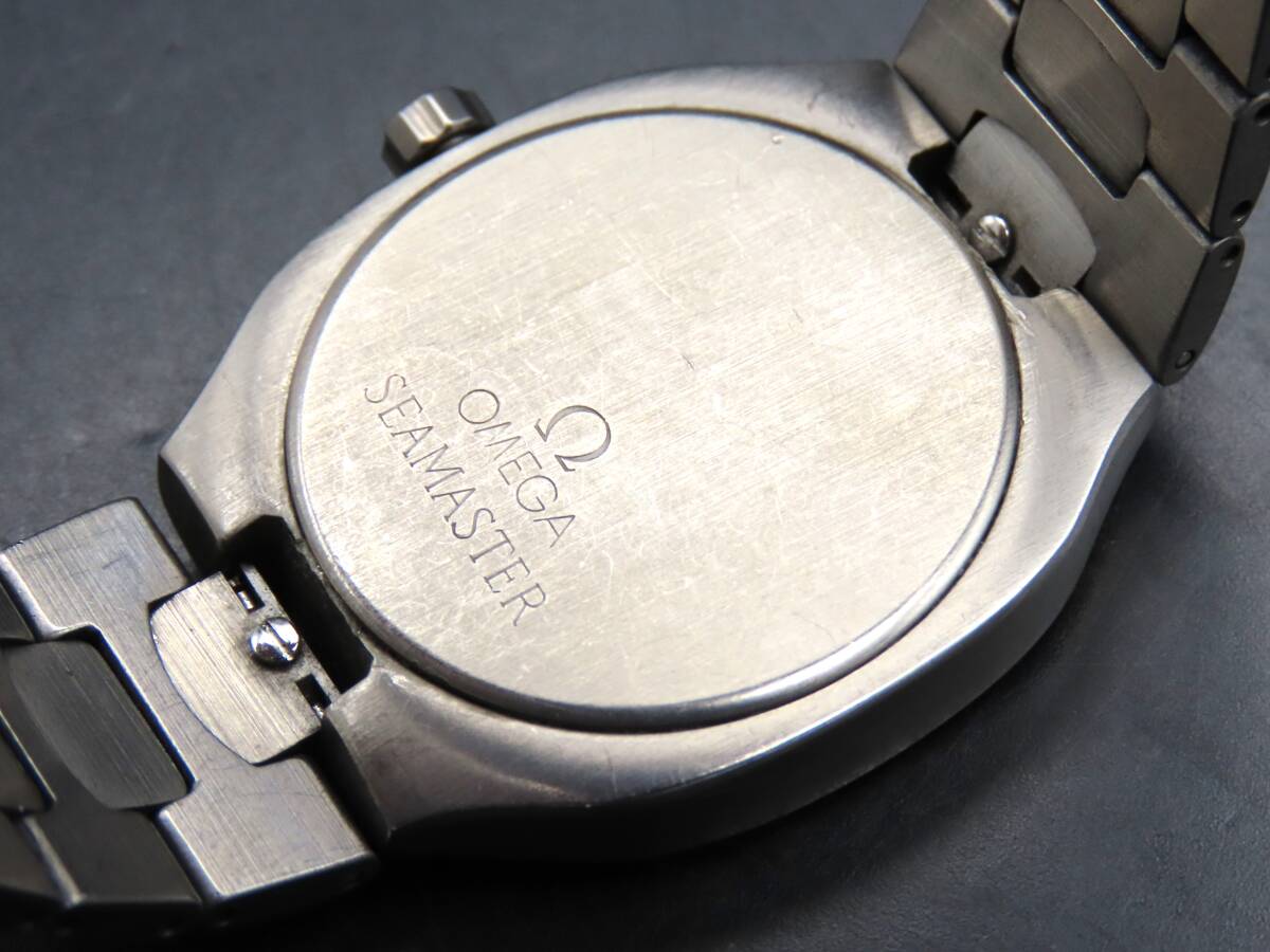 1円~! 稼動品★正規品 OMEGA オメガ シーマスター ポラリス チタン クォーツ デイト 純正ブレス 1455/448 メンズ腕時計 PPKLG1449