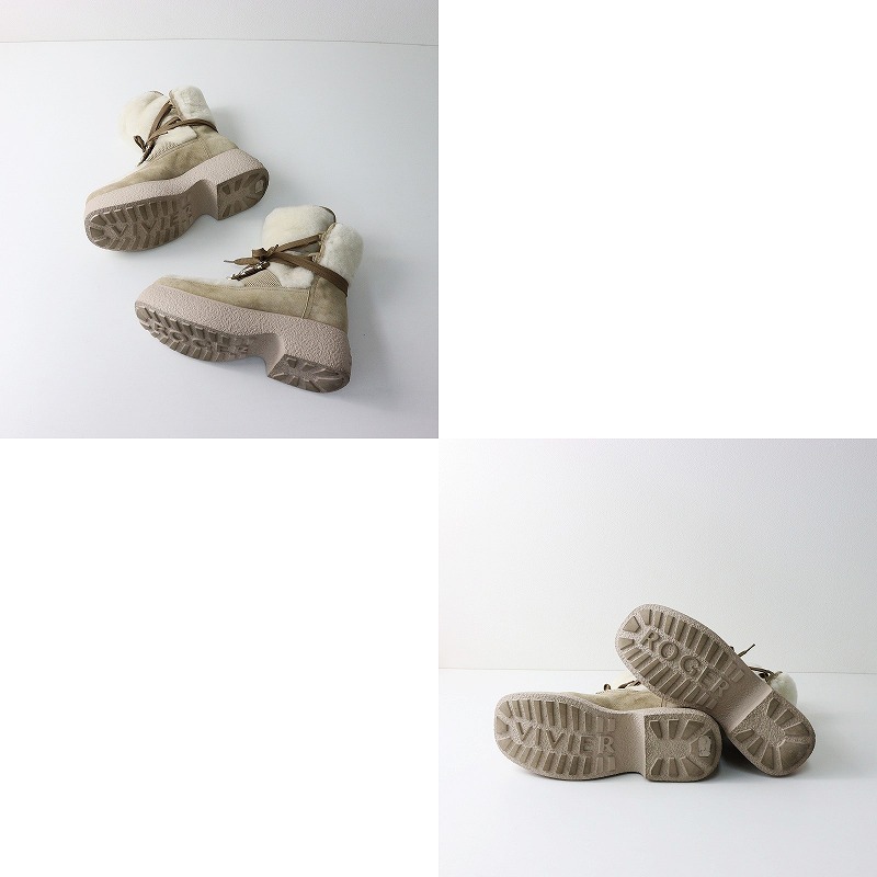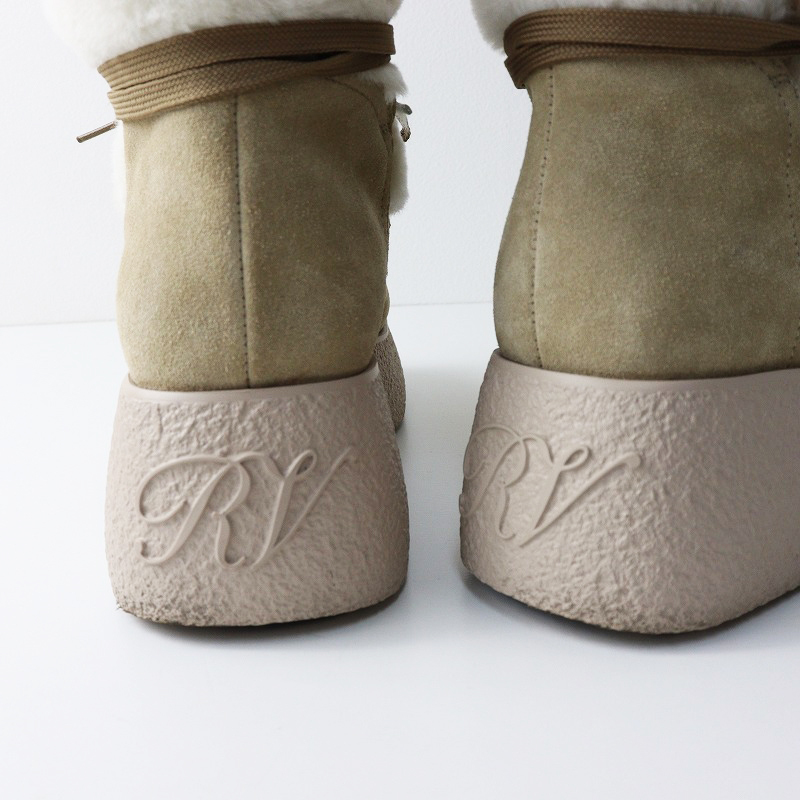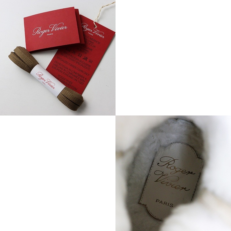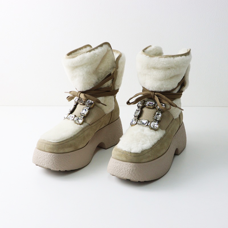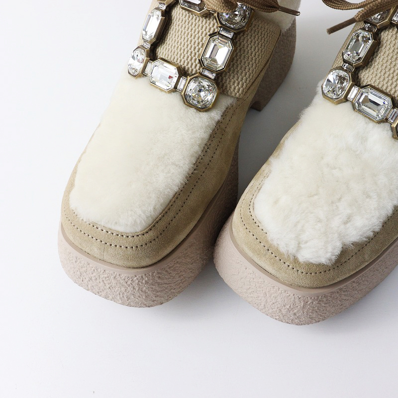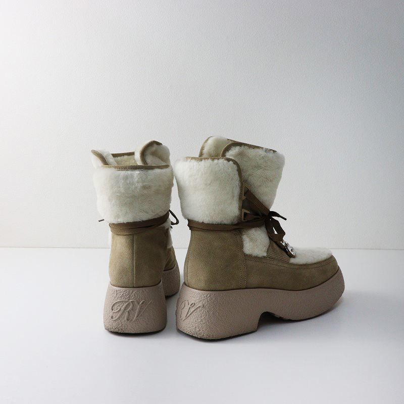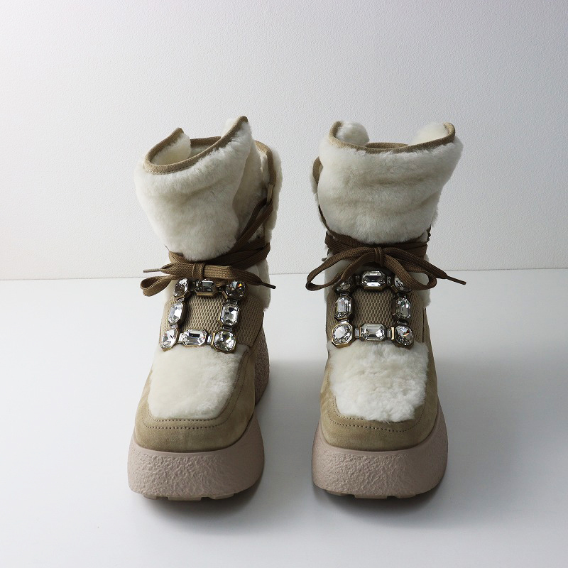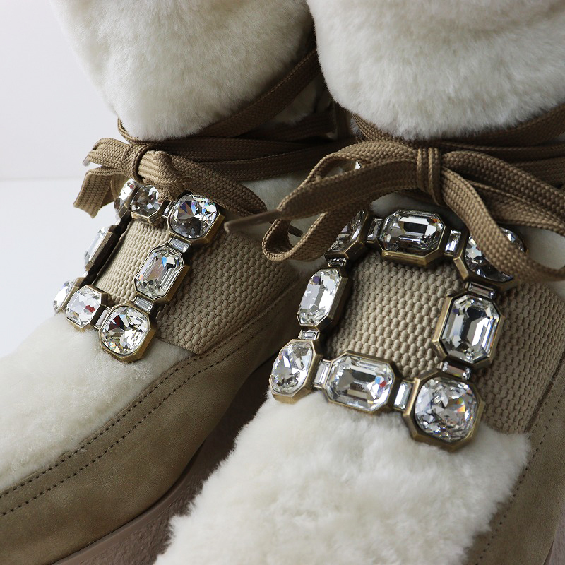 美品 ロジェヴィヴィエ ROGER VIVIER ビジュー ストラスバックル ファーブーツ 39|ベージュ ボア 約25cm【2400014570267】