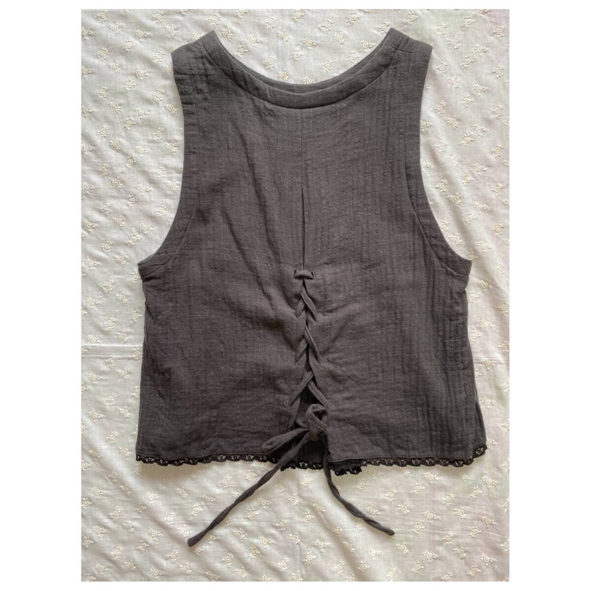 SM2『後ろレースアップ裾レースベスト』チャコール 1回新品同様 Samansa Mos2 サマンサモスモス