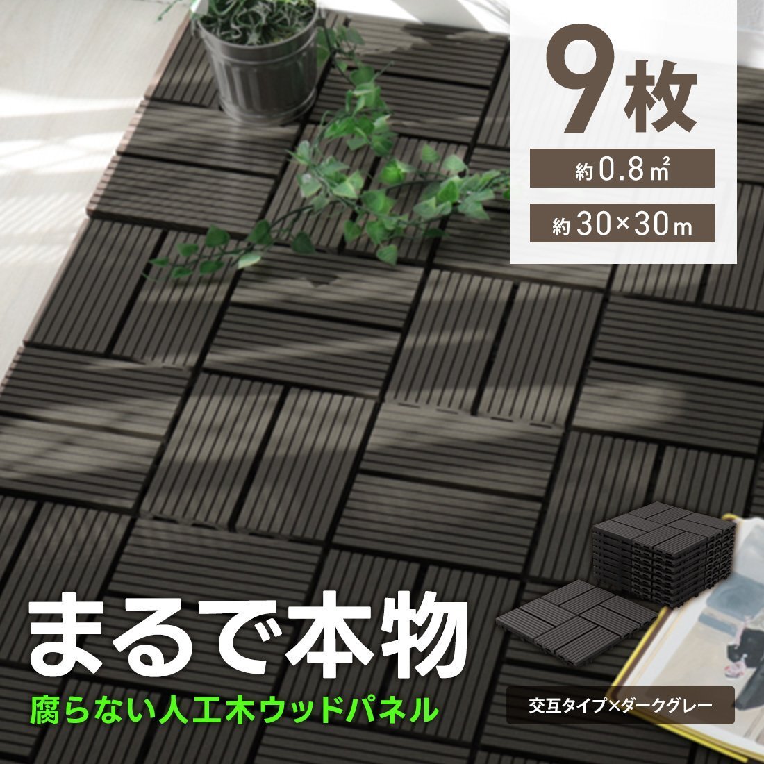 | パズルみたいにサイドの凹凸を繋ぎ合わせるだけで簡単に施工が出来るジョイント式ウッドタイル! ベランダの雰囲気を変えたり劣化してきたベランダの修復に最適! 雨や日差しによる劣化に強く耐腐食性もある人工木を使用。 55%の天然木粉と45%の樹脂で出来ており、天然木製と比べると定期的なお手入れも不要! 小さなお子様やペットにも安心。さらっとした感触でささくれや釘による怪我の心配もなし。 安全に長期間使用できる優れものです! 【商品詳細】 カラー:ダークグレー(交互タイプ) 表面のサイズ(約):幅29.5cm×長さ29.5cm×高さ2cm ジョイント部分も含んだサイズ(約):幅30.5cm×長さ30.5cm×高さ2cm 表面隙間:5mm 重量(約):0.9kg 圧力強度:3000N 材質:WPC素材(木材・プラスチック複合材) 表面・・・人工木(天然木の木粉55%入り) 裏面・・・ポリプロピレン樹脂 【商品内容】 ウッドパネル × 9 |