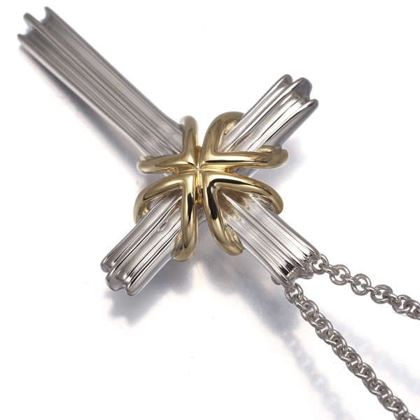 Xをモチーフとしたゴールドの立体的な煌めきをクロスモチーフに飾った ティファニーのシグネチャークロスネックレスです。 |