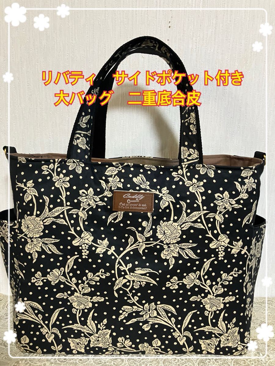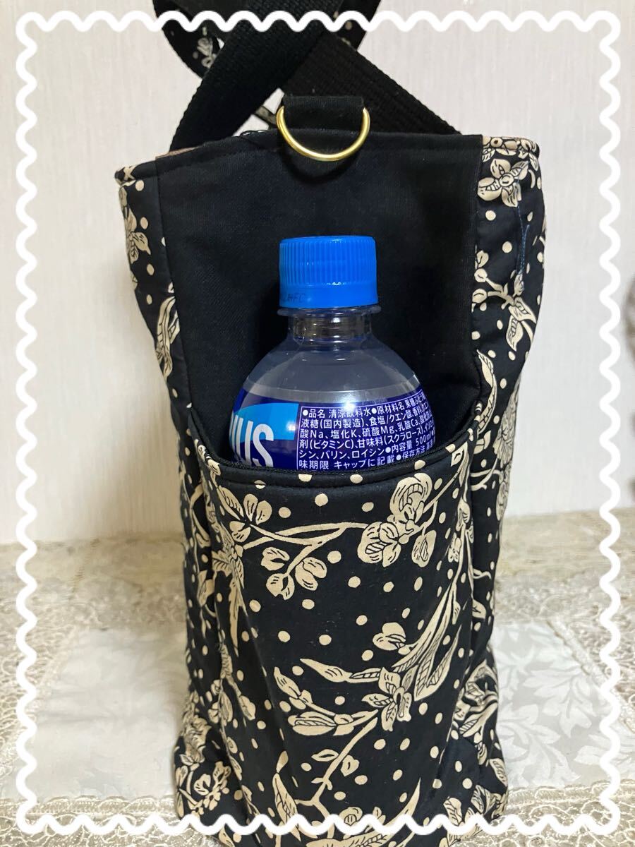サイドポケットには ペットボトルや携帯 傘など入ります。また合皮を底に使用しています。