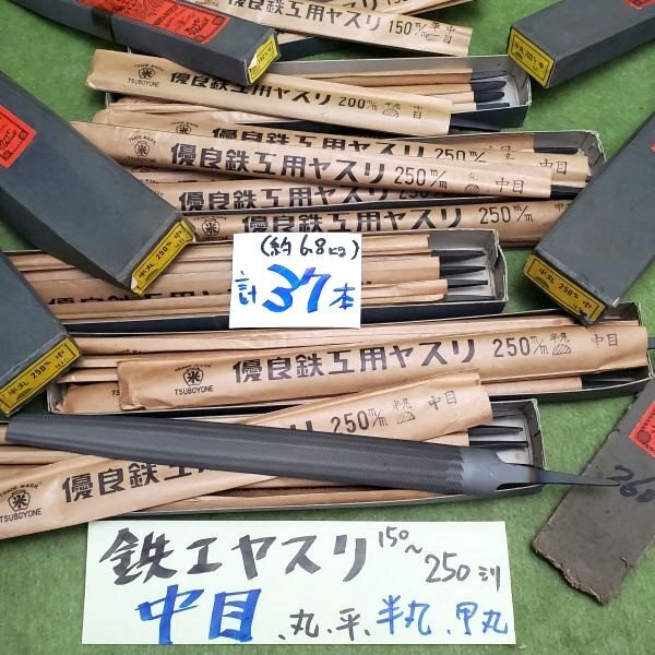 商品名 【アウトレット品】 ツボヨネ 優良 鉄工用 ヤスリ 中目 150、200,250㎜ 計37本セット 平 丸 半丸 甲丸 鑢 鉄工ヤスリ sp-032-395