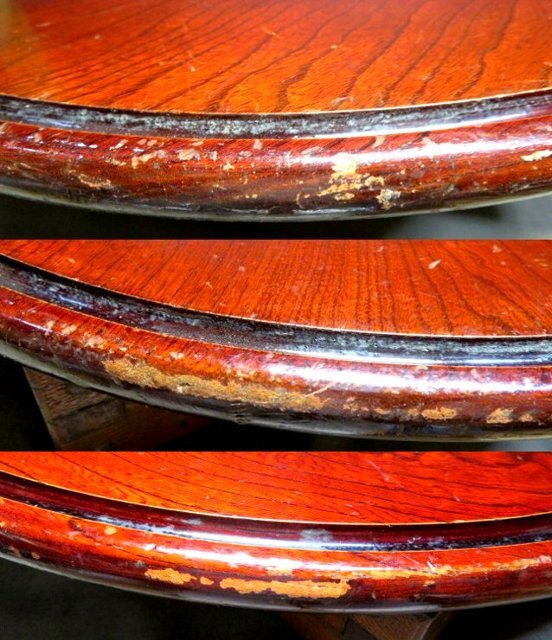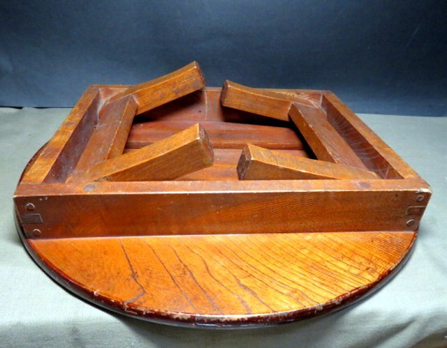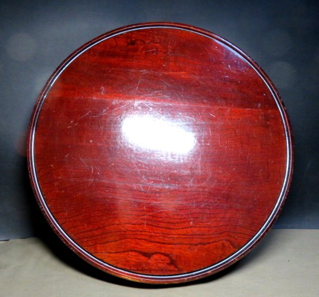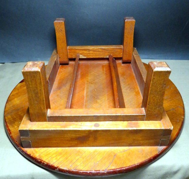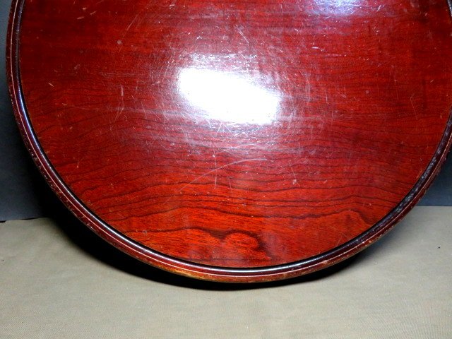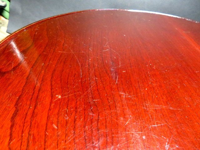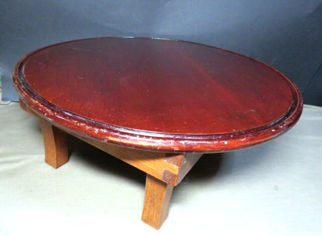 ご覧のレトロな丸テーブルで、ケヤキ材使用です。 今でもしっかりとした止め具の状態良好で、一部途中で留まってしまいますが、使用には問題ありません。 骨董の飾り棚にもなります。 口径45㎝ 天板の厚さ1.5㎝ 高さ17.5㎝ 箱なし 〒サイズ120 沢山の画像がありますので、最後までご覧・確認・納得願います。 事前の照会と自己責任での入札をお願いします。