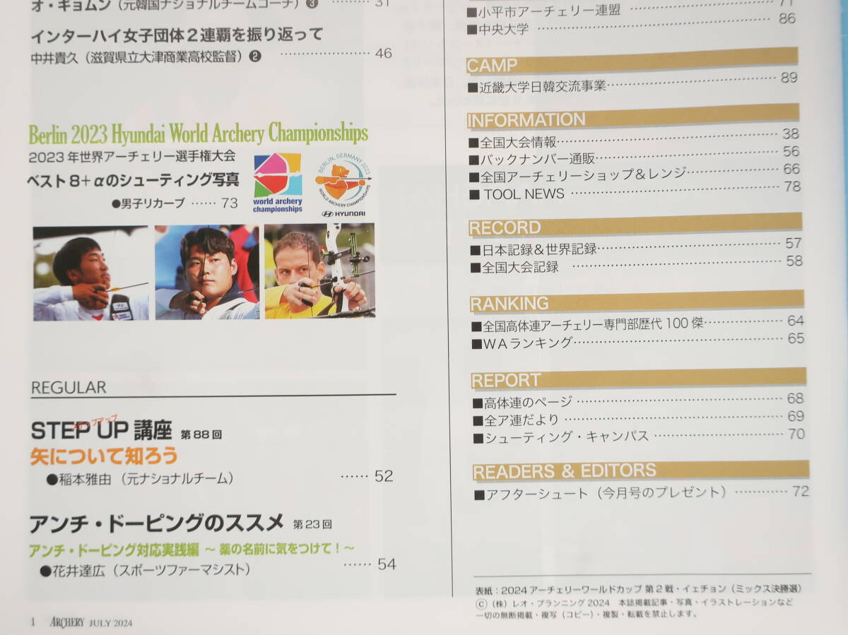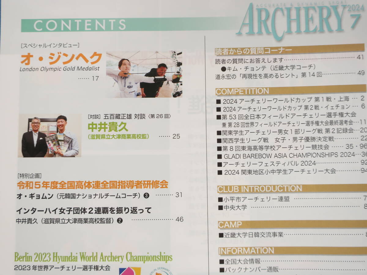 | アーチェリー2024年7月号/隔月刊ARCHERY/特集:オ・ジンヘク 金メダリスト/オ・ジンヘク/矢について知ろう/ステップアップ技術解説/大会結果 | ||||