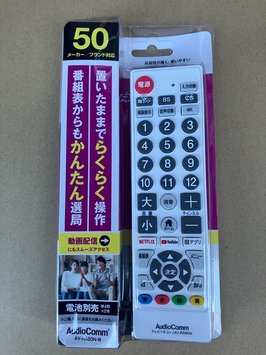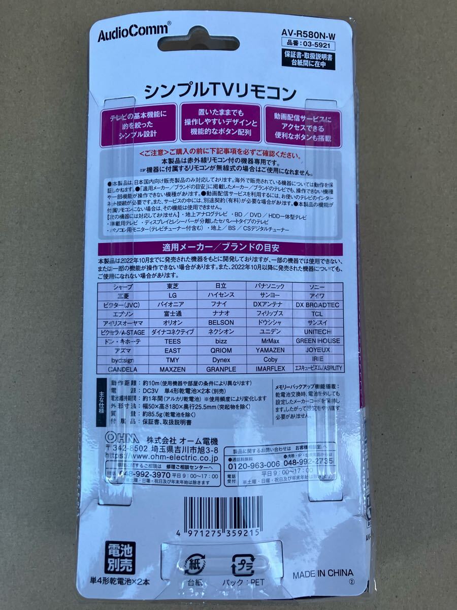 オーム電機 OHM TV用シンプルリモコン ホワイト AV-R580N-W