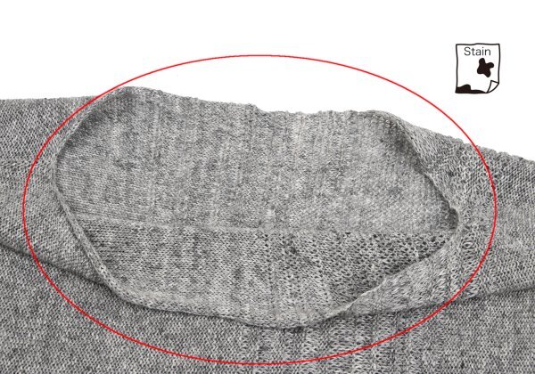 コンディション | 透け感があります。首周り・前身頃にシミがあります(写真参照)。その他目立ったシミ、汚れ、ほつれ等なくいい状態です。クリーニング済み。 |