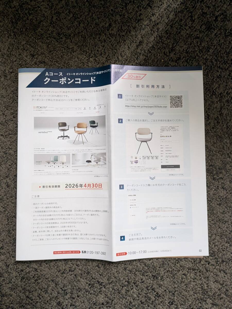 イトーキ 株主優待券 30%割引クーポンです。