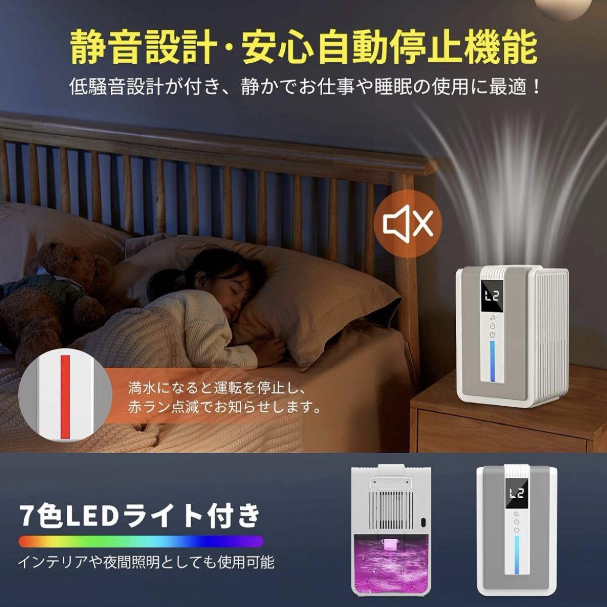 低騒音・低振動の除湿機で、仕事や睡眠への影響を最小限に抑え、夜でも安心してご使用いただけます。