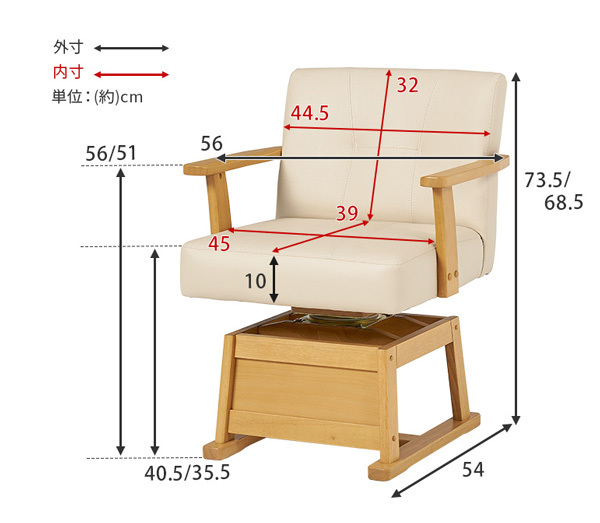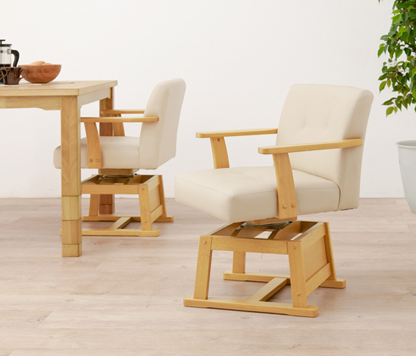 肘掛付木製ダイニングチェアー 2脚セット ハイタイプこたつ用食卓椅子 KC-7589NA ナチュラル色シンプルで落ち着いたナチュラル色のダイニングチェアーです。肘掛付で座面回転式です。◆椅子サイズ:幅56×奥54×高さ73.5/68.5×座面高40.5/35.5センチ 2段階高さ調整可(組換え式) ◆構造部材:ラバーウッド ラッカー塗装仕上げ 座面:回転式 張り生地:合成皮革 組立式◇このシリーズには「1脚のみ」「2脚セット」の2種類ございます。☆落札、ご入金確認後 1~2日にて発送いたします 追加納期のかかるものは商品ページに記載いたしております よろしくお願いいたします。