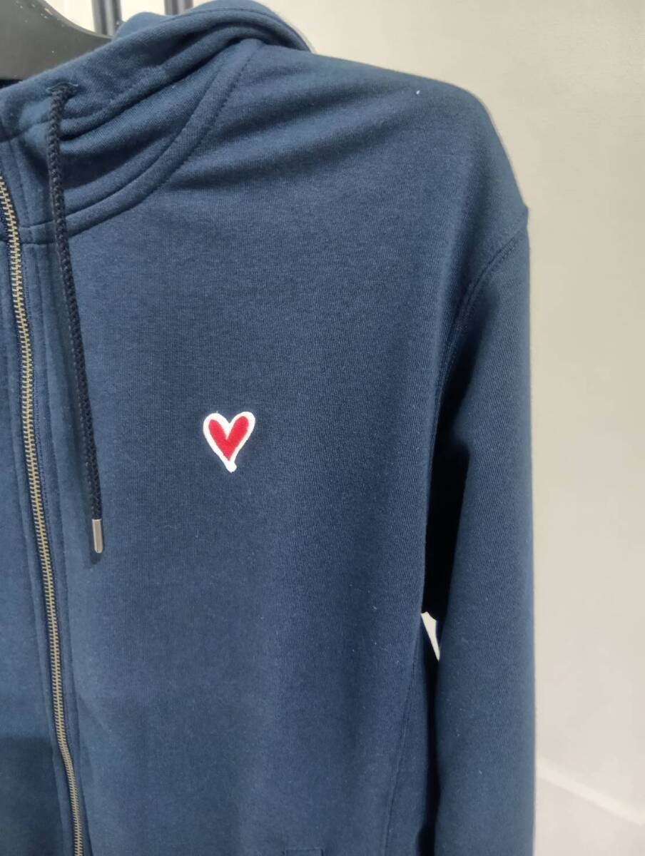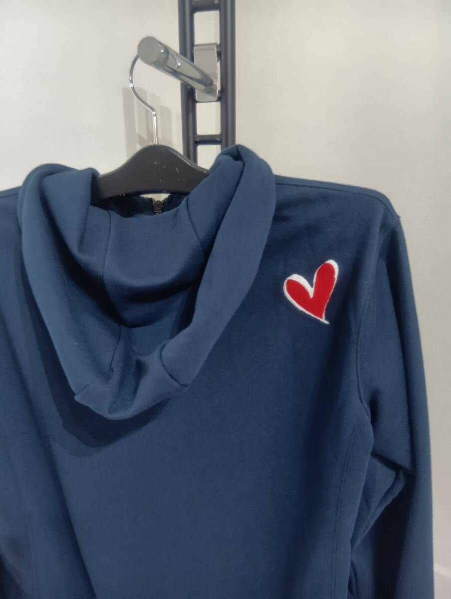 パーカーで、少し薄目のスウェットです。バックプリントのハートがシンプルで可愛いですね