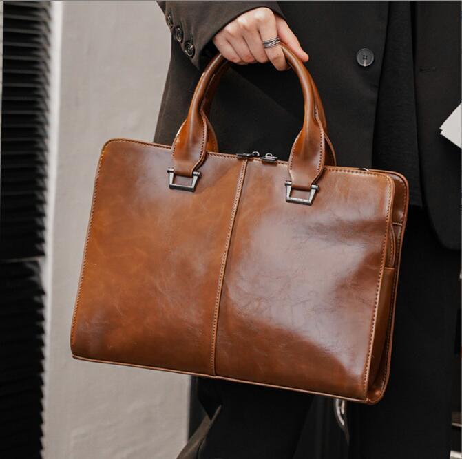 新入荷大人気ビジネスバッグ メンズ 大容量 2way トートバッグ 手提げ 肩掛け A4 ショルダーバッグ バッグ 手提げかばん革鞄ハンドバッ茶色
