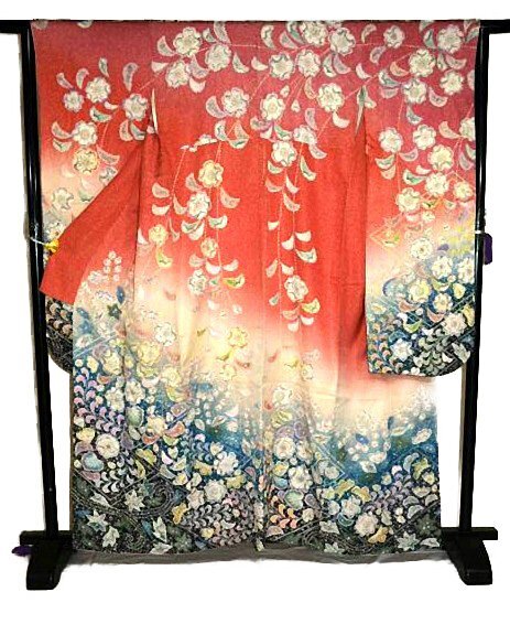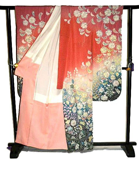 振袖 中古 着物 送料無料 最高峰 新品同様 暈し染め 辻が花 花柄 絞り 銀通し地 身丈163cm 裄丈64cm 正絹 成人式 T3629