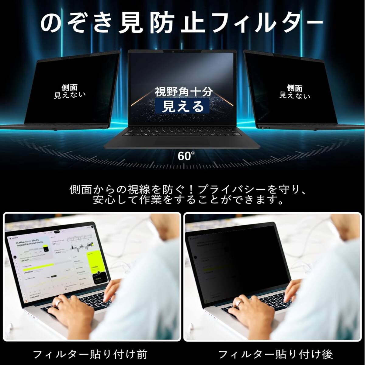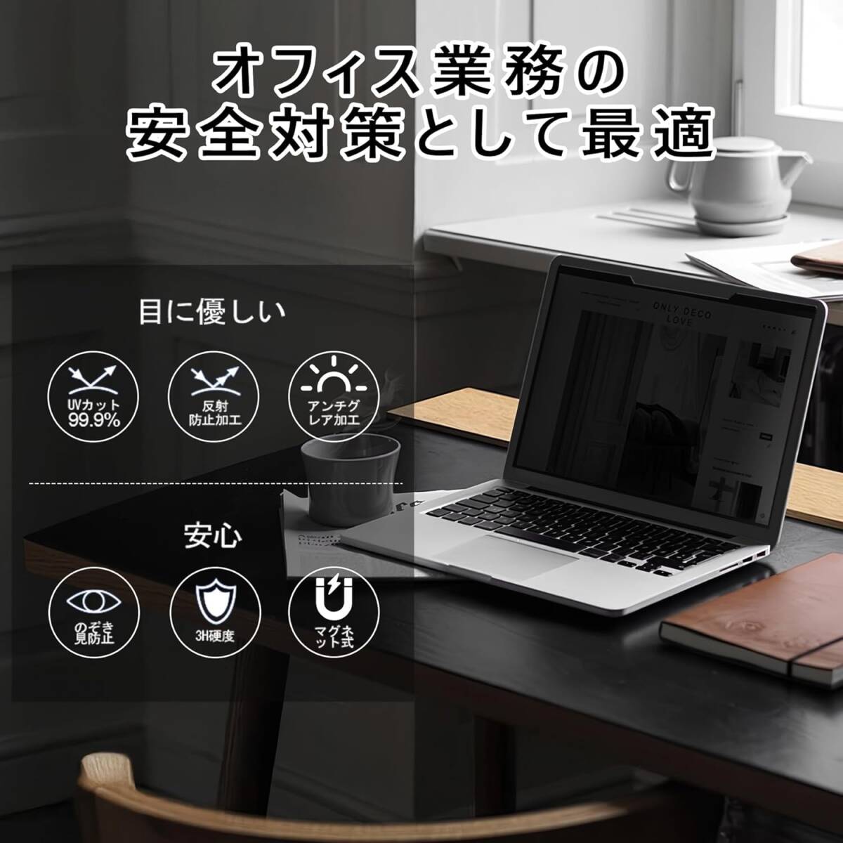 13.3インチ パソコン 覗き見防止フィルム 画面保護フィルム 16:9マグネット ブルーライトカット 反射防止