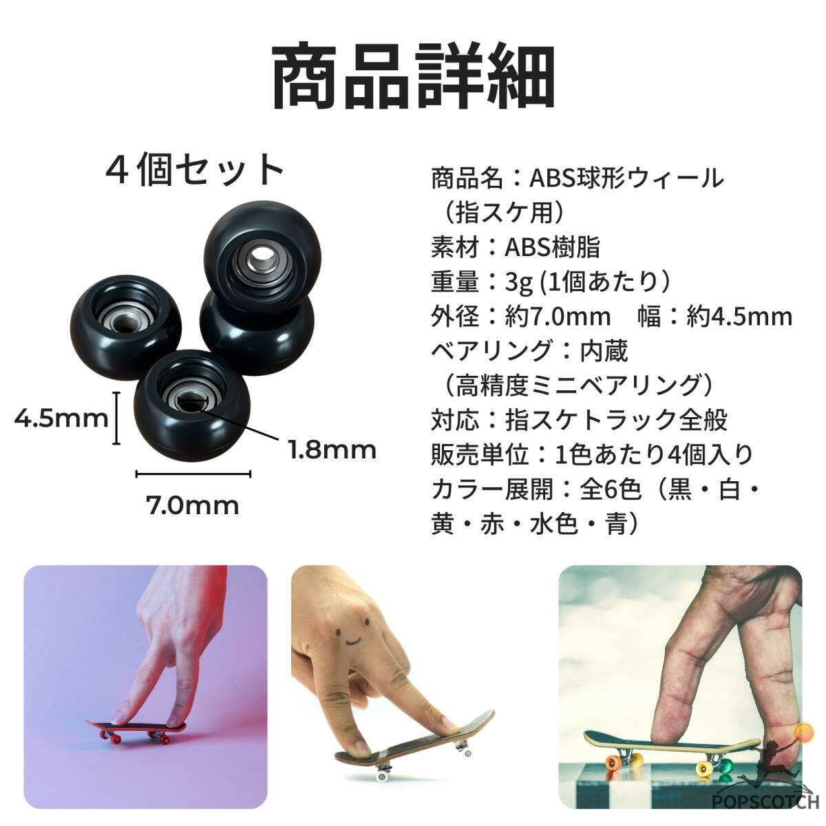 商品の説明 【フィンガースケート用 交換タイヤ】 指スケ タイヤ 4個セット(ベアリング付き)です。 耐久性のある素材で、スムーズな回転を実現。 トリックやジャンプの安定感を高め、指スケのパフォーマンスをサポートします。 カスタムや交換用におすすめのアイテムです。 ◆内容:タイヤ4個セット ◆カラー:ブラック ◆状態:新品・未使用 フィンガースケート 指スケ ミニスケート スケボー スケートボード ホイール タイヤ ベアリング カスタム 交換用