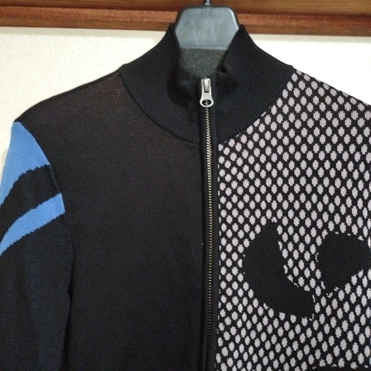 襟はラウンドネック、ファスナーで開閉でシャープな印象に。