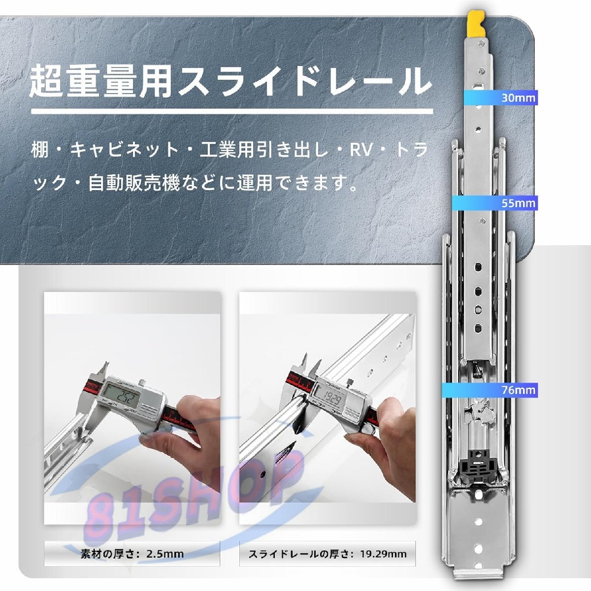 「81SHOP」スライドレール 引き出しスライド ロック付 重量用 スライドレール 20in 500mm スライド 耐荷重217kg 左右1セット