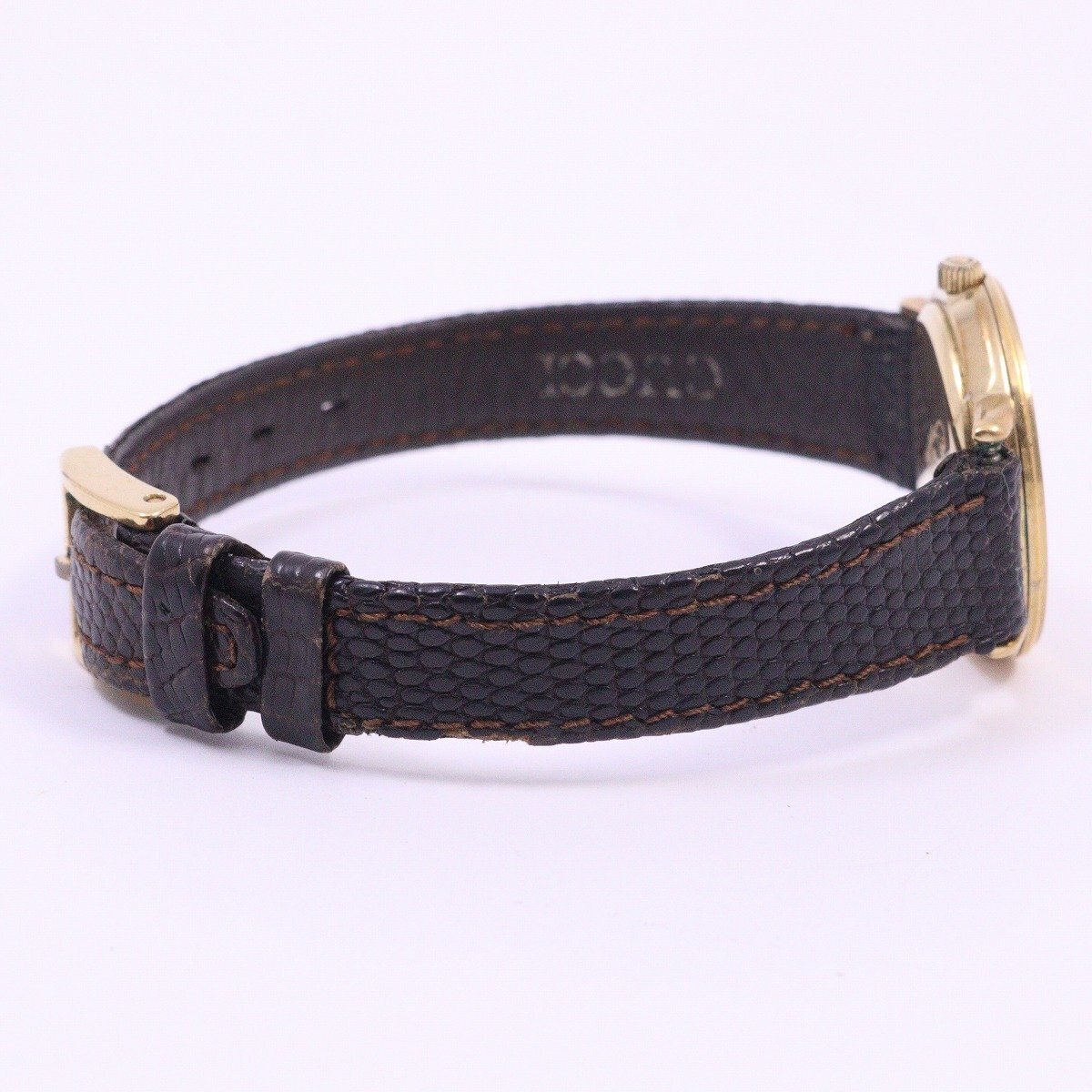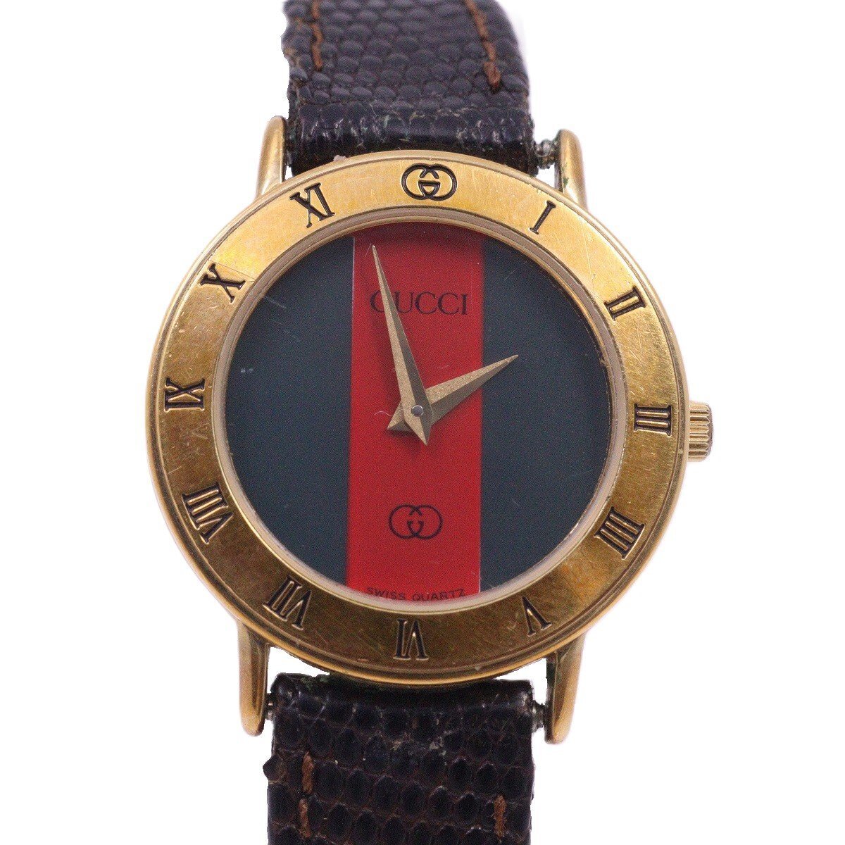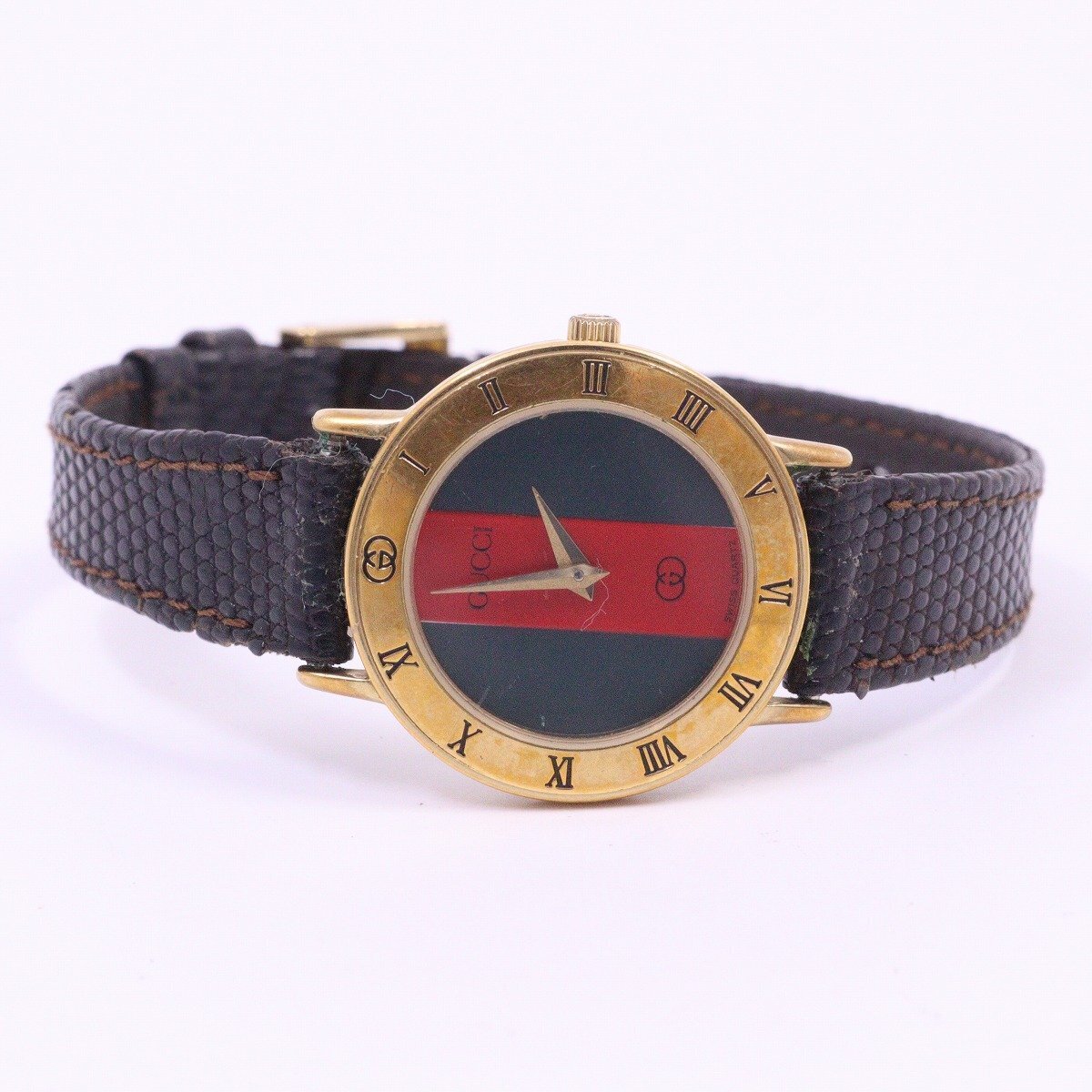 グッチ 3000 ラウンド型 クォーツ レディース 腕時計 ゴールドGP シェリーライン文字盤 純正革ベルト【いおき質店】