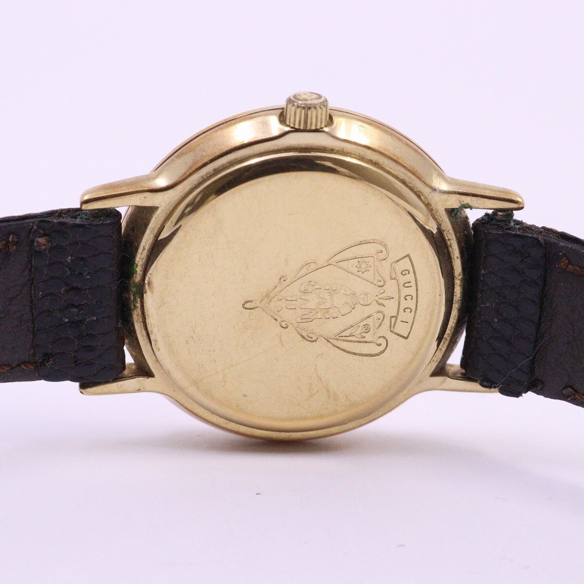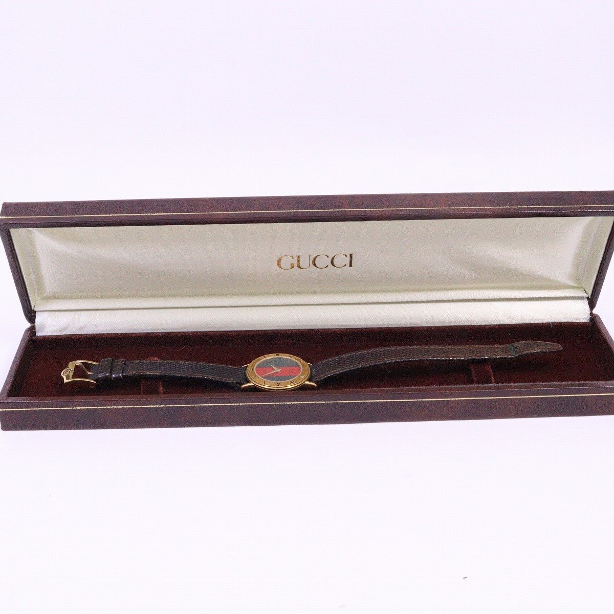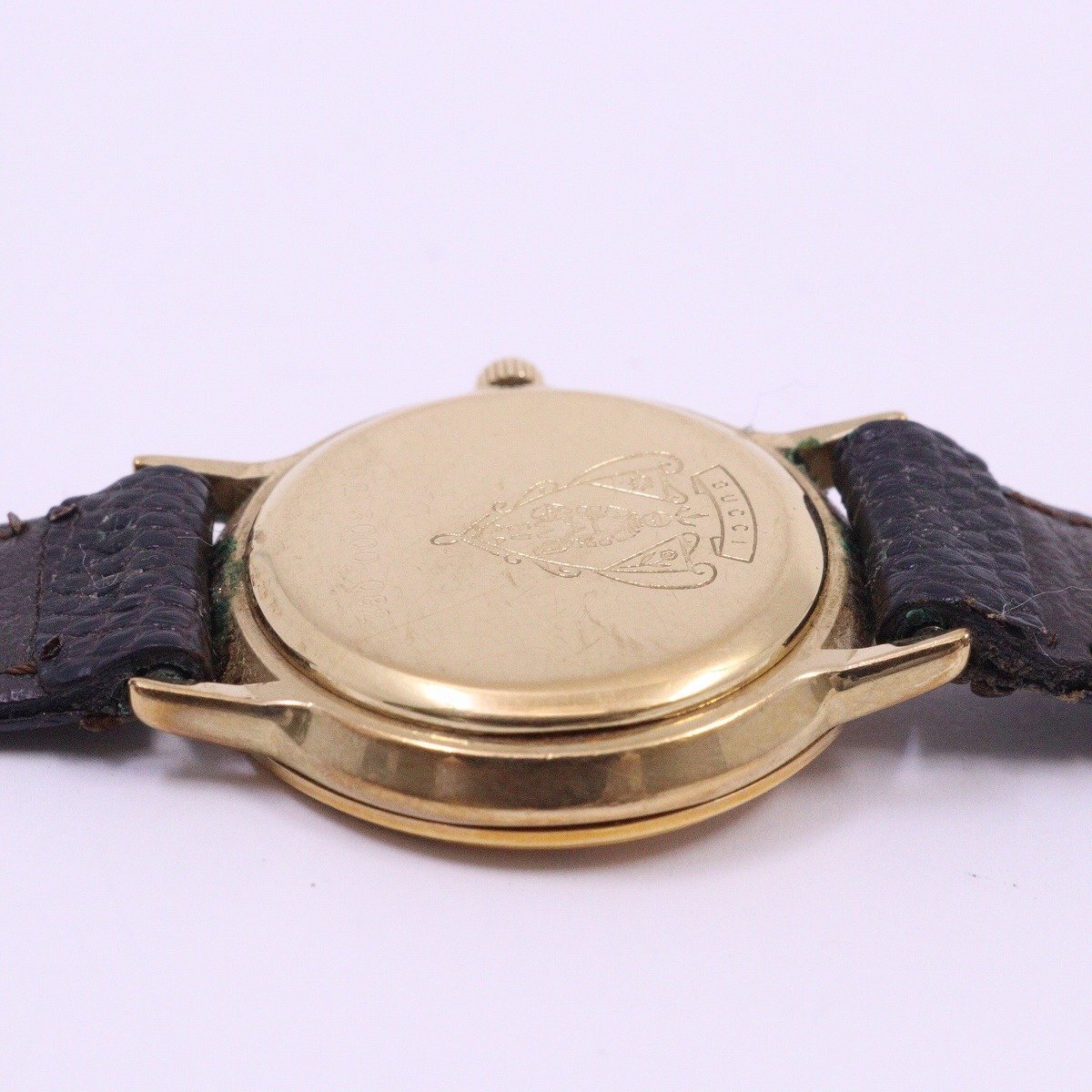 グッチ 3000 ラウンド型 クォーツ レディース 腕時計 ゴールドGP シェリーライン文字盤 純正革ベルト【いおき質店】
