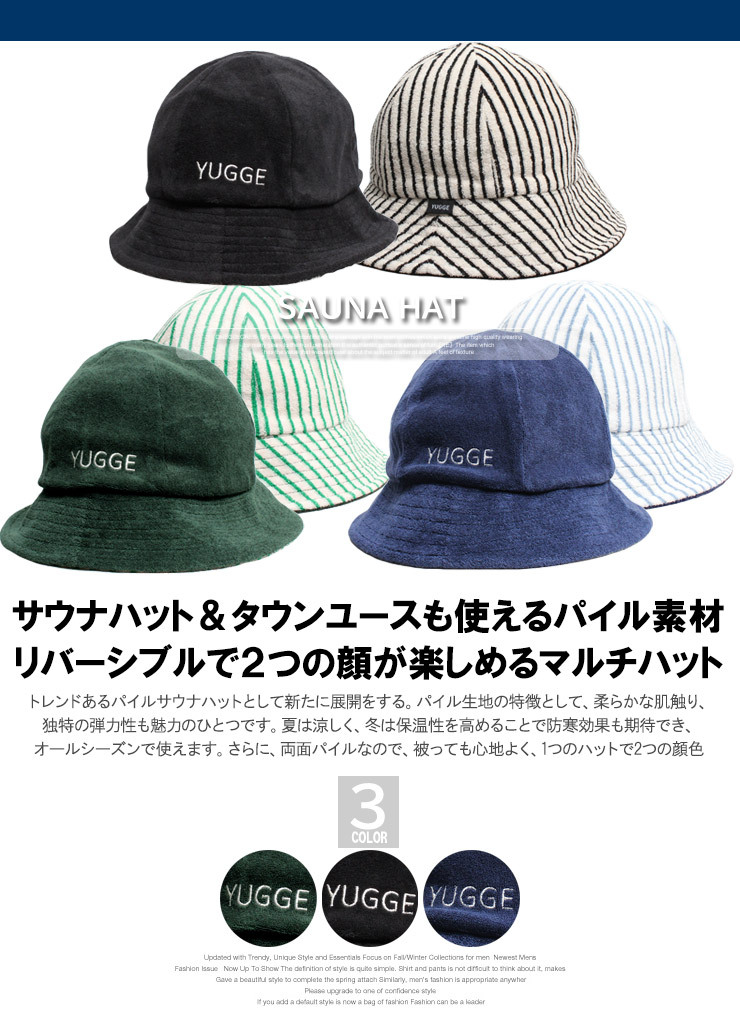 商品名 | 【新品】 F グリーン yugge(ユッゲ) サウナハット メンズ パイル地 タオル生地 リバーシブル サウナキャップ レディース 男女兼用 メトロハット |