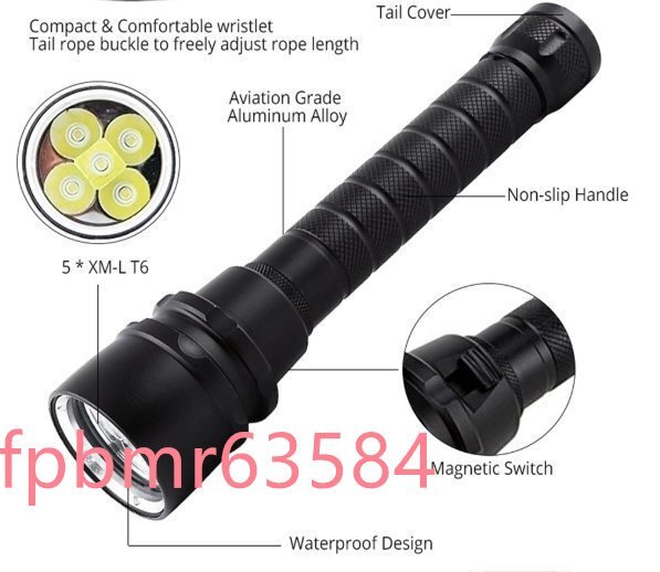 懐中電灯 ダイビング 5×T6 ダイビングライト トーチ★ 潜水 スキューバ 水中 防水