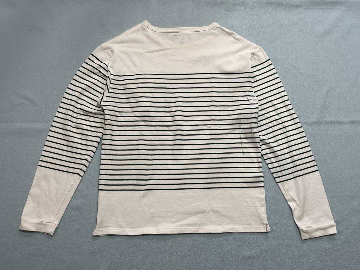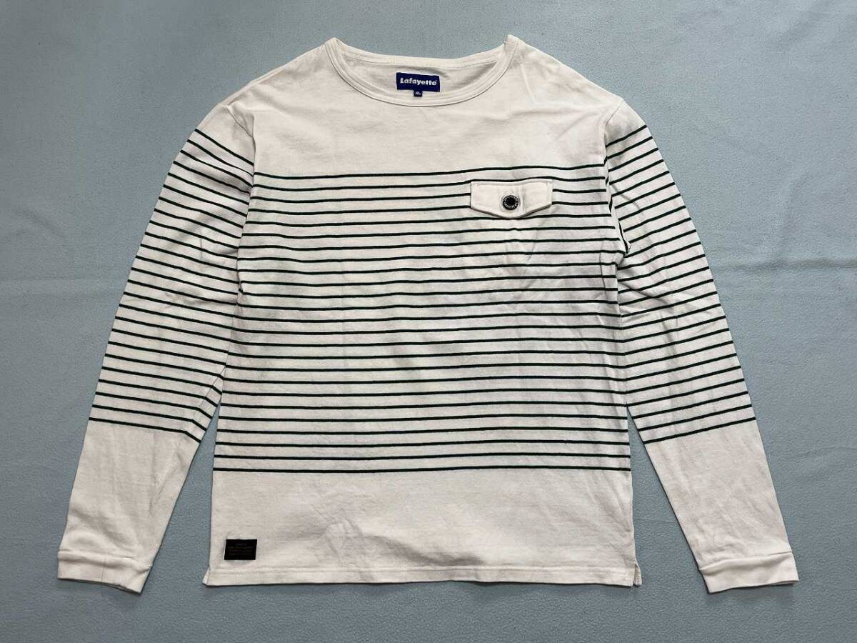 ラファイエットのボーダーポケットロングスリーブバスクシャツです。 耐久性の高い度詰めのコットン天竺生地を使用 やや厚手のロングスリーブTシャツのような感覚で着用可能 左胸にフラップ付きポケットを付属 ボタンはオリジナルのロゴ入りボタンを使用 【 色 】 白 【サイズ】 XL ↓実寸サイズを載せておきます。 ・ 着丈:68.0cm ・ 肩幅:53.0cm ・ 身幅:53.0cm ・ 袖丈:63.0cm 【 素材 】 綿 100% 【 状態 】 中古 目立つような汚れはありません。 着用は1・2回です。 あくまで、古着ですので ご理解頂ける方のみ入札をお願い致します。 洗濯の実績があります。 10段階中7程度です。 状態評価について 10・・・新品、試着のみ 9・・・数回着用 8・・・数十回着用 7・・・洗濯有り(クリーニングも含む) 6・・・汚れ、ほつれ、スレの痛みがあります 5・・・ボタンが無い、チャックが壊れている、穴が開いている | ||
