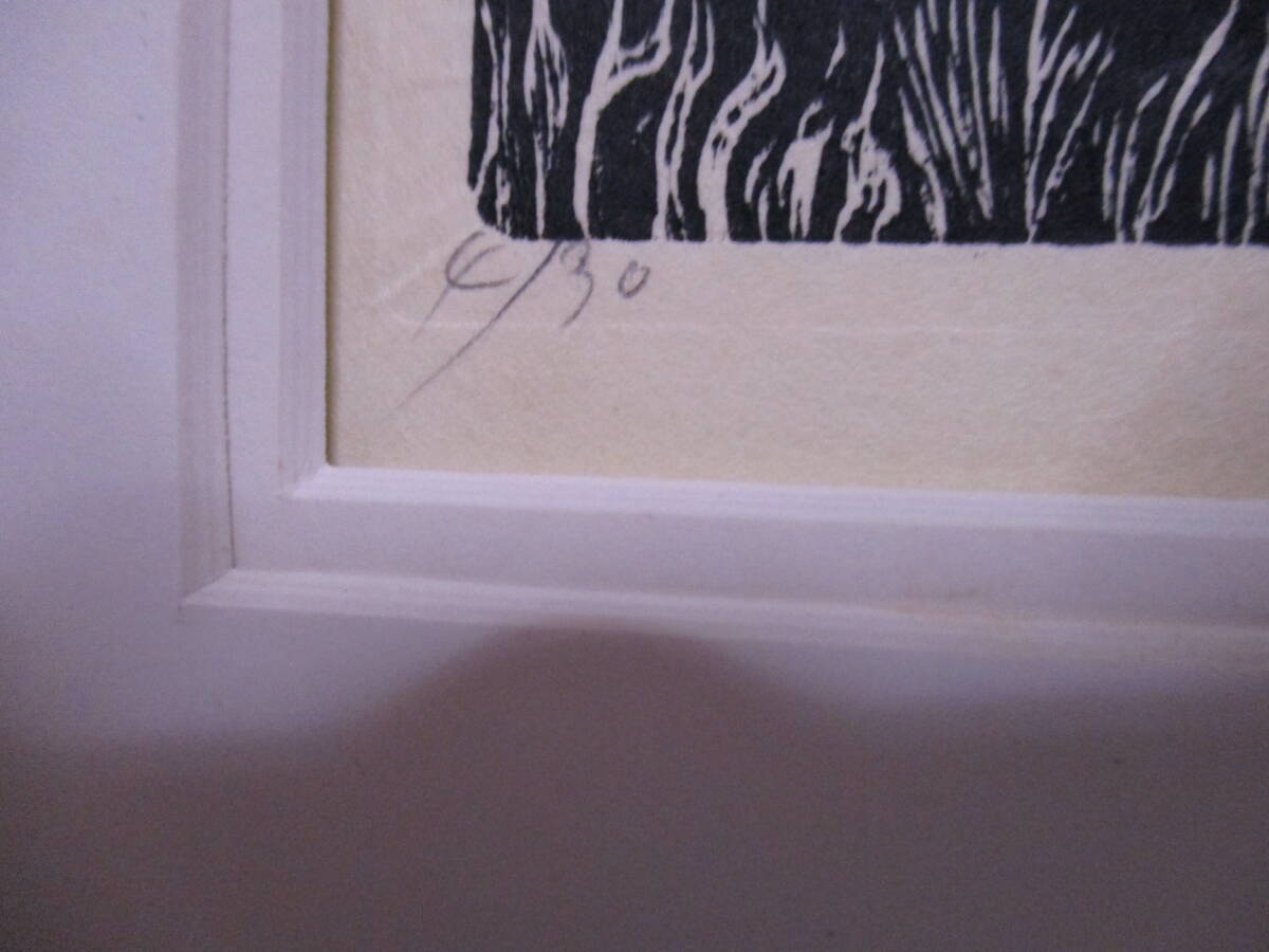 日下里美(1935年生・棟方志功門下) 不思議な世界観で魅了する作家 1935 (昭和10年)岡山県生まれ 1955 日本版画院展 版画院賞受賞 1956 棟方志功に師事 1966 日本版画院会員、運営委員を歴任 その後退会 個展等多数 版画「さくや姫(古事記より)」1979年 限定30の4 サイン・署名 額のサイズ695X544ミリ 箱なし、黄袋なし サインは79,1979年となっています。 古書展で購入、シートがずれておりサインや題名が見えなかったため 諸星大二郎あたりかなと誰の作品か判らずに購入。 額の裏板を外してシートを確認。 裏板はタッカー(ホチキス)で簡易的に留めてあります 額自体は傷や色褪せがあり状態は良くありません。 現状での発送になりますのでご理解をお願いします。 発送方法はゆうパック140サイズ着払いになります。 東京都内で2120円、北海道・九州2680円が目安です。 段ボールで補強して発送します。 |