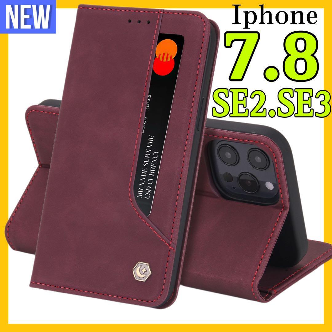 iPhone7-8 iphoneSE第2-3世代ケース 手帳型 シンプル ビジネス 赤色 上質でPUレザー アイホン7-8 アイホンSE第2世代 アイホンSE第3世代カバー カード収納 タンド機能 薄型 軽量 アップル スマホケース お札収納 ソフトTPU カード入れ 財布型 アイホンケース レッド